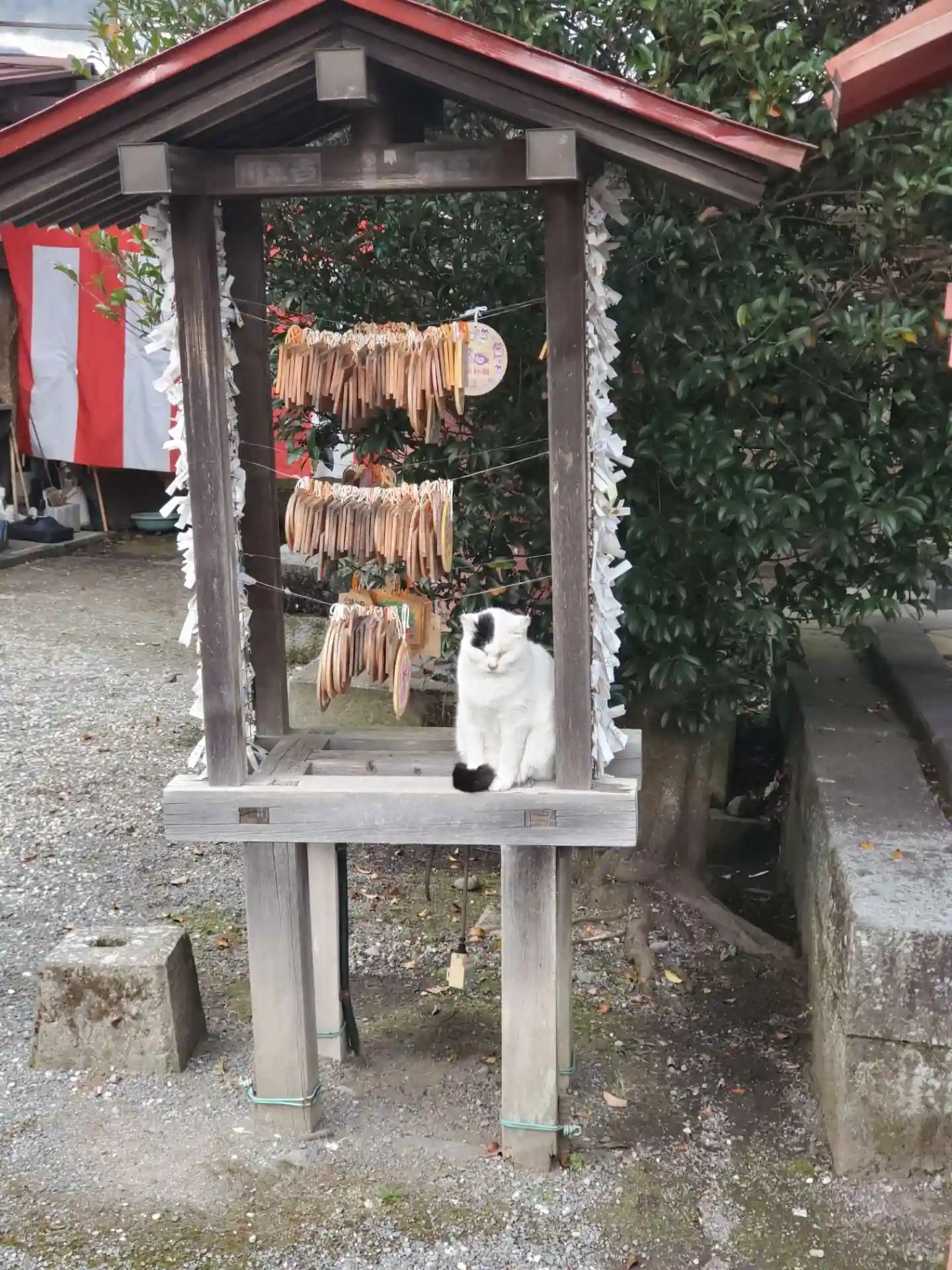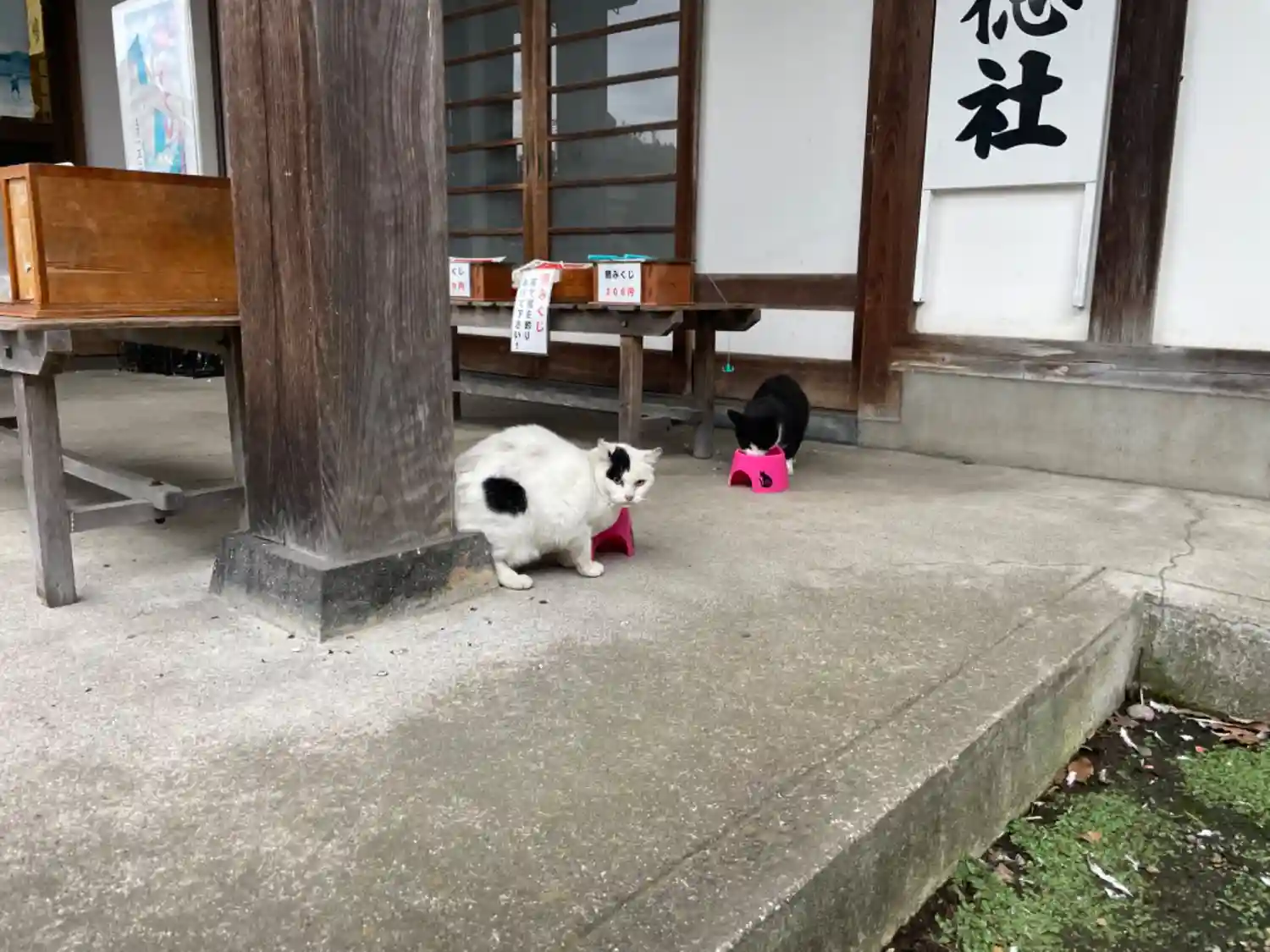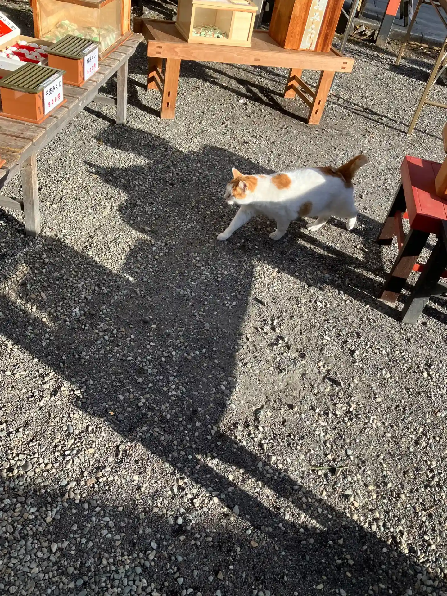 神社の猫ちゃんたちは、あまり人馴れしていないので近づくと逃げ…