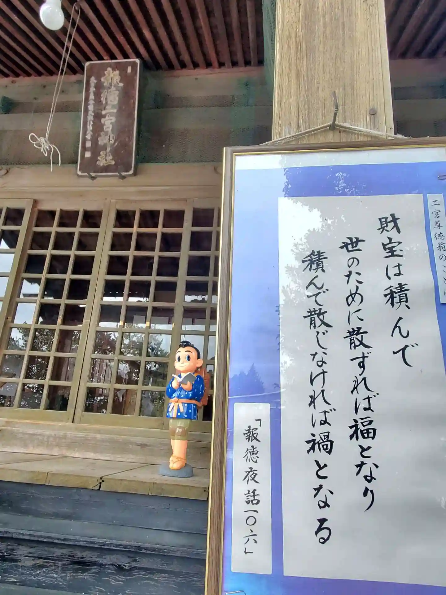 拝殿の柱に尊徳さんのお言葉。