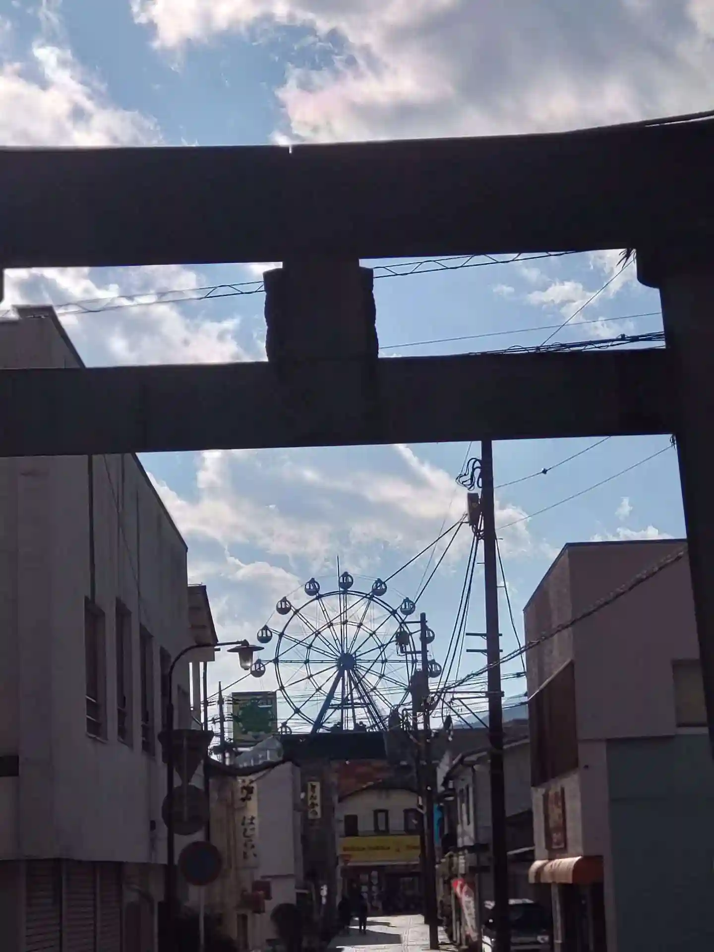 境内からは鳥居越しに観覧車🎡