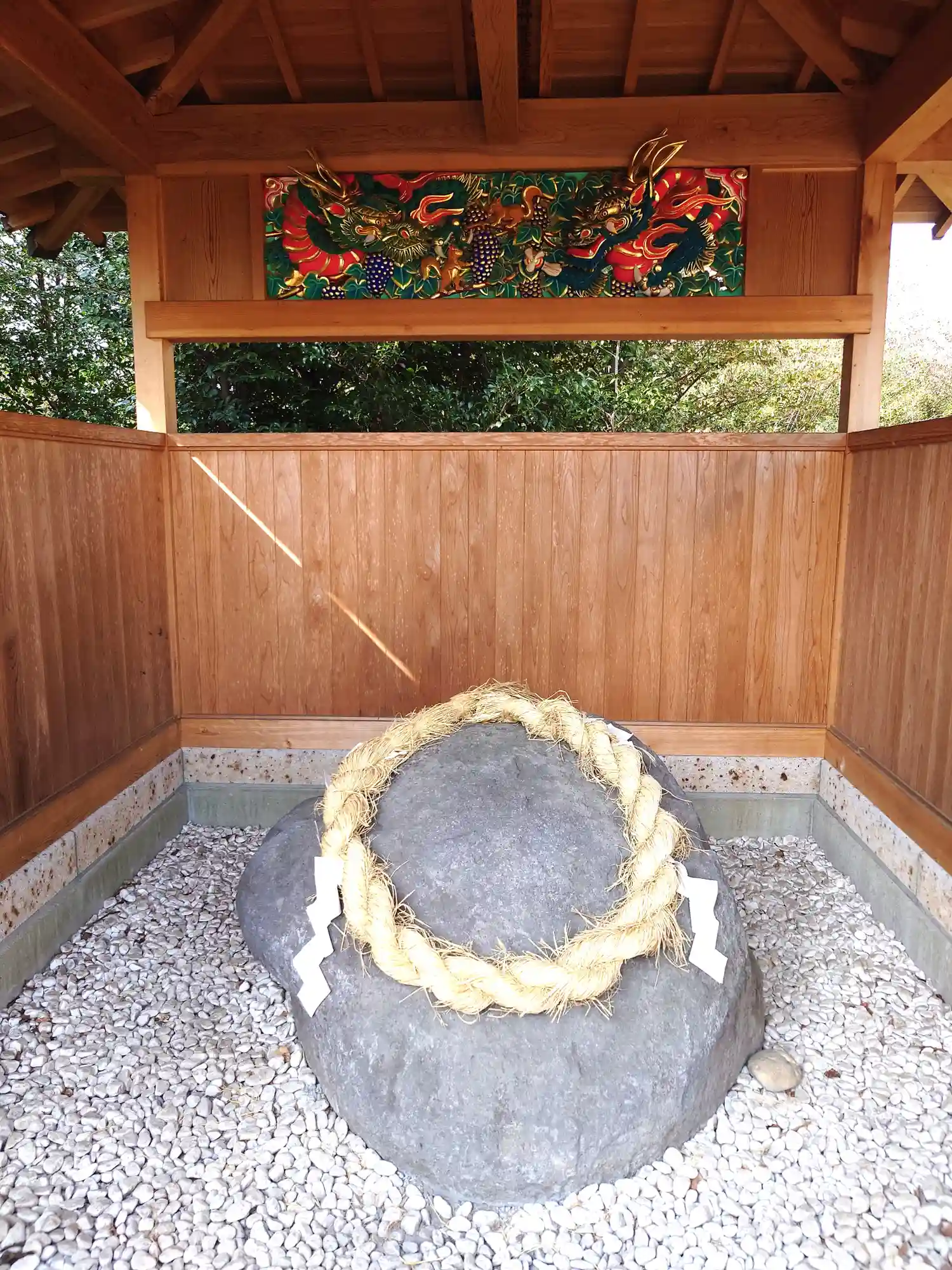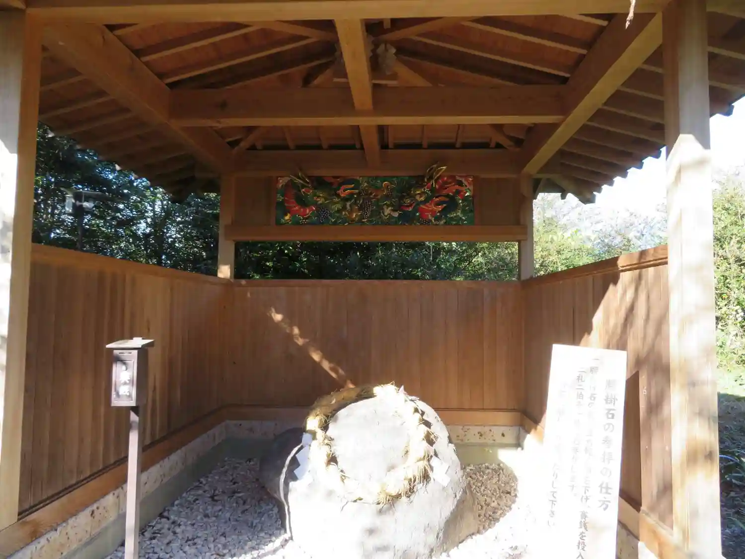 腰掛石と極彩色彫刻