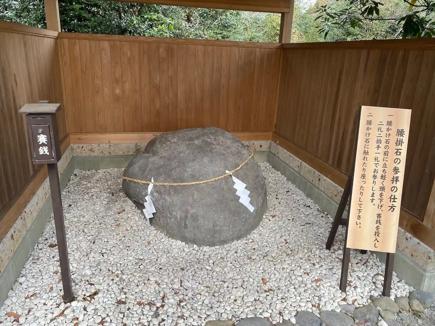 (腰掛石・・神様がお座りになる尊い石)