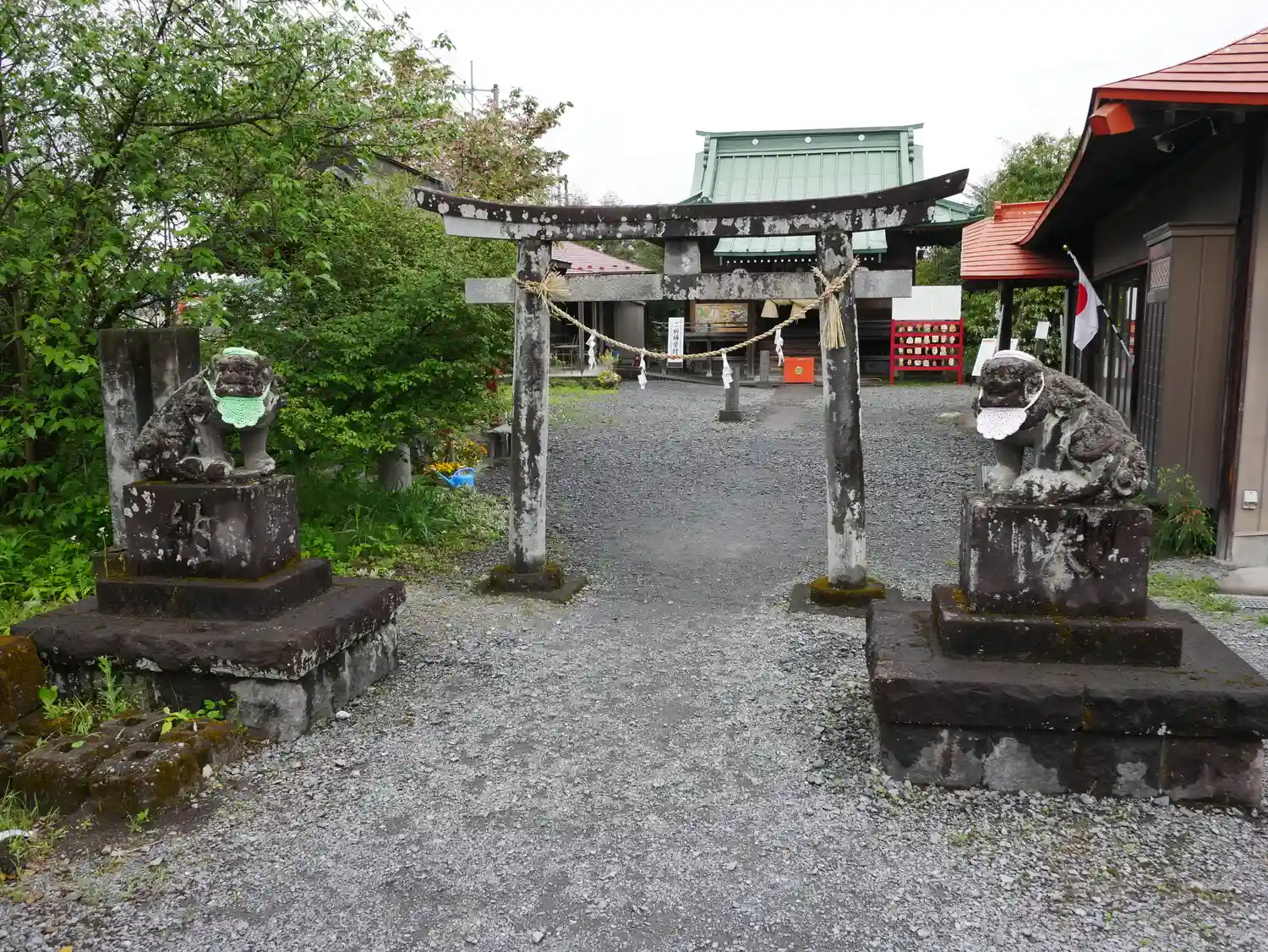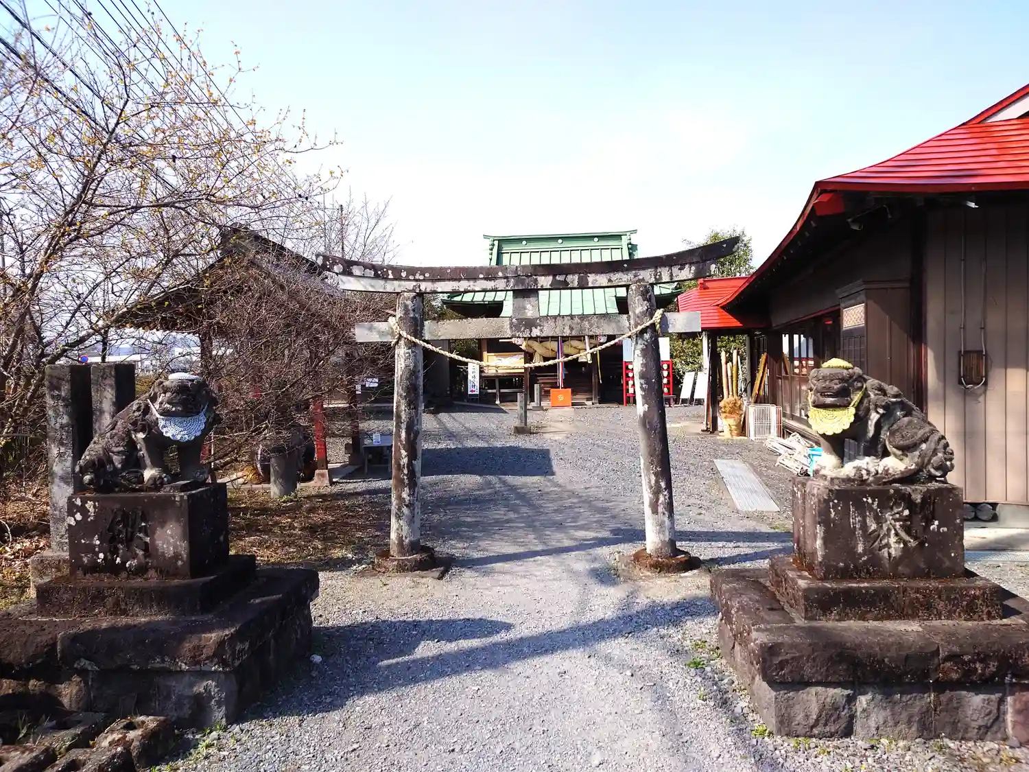 左右の狛犬と鳥居
