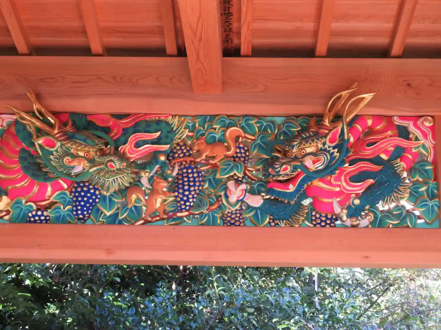 双竜・栗鼠・葡萄 極彩色彫刻