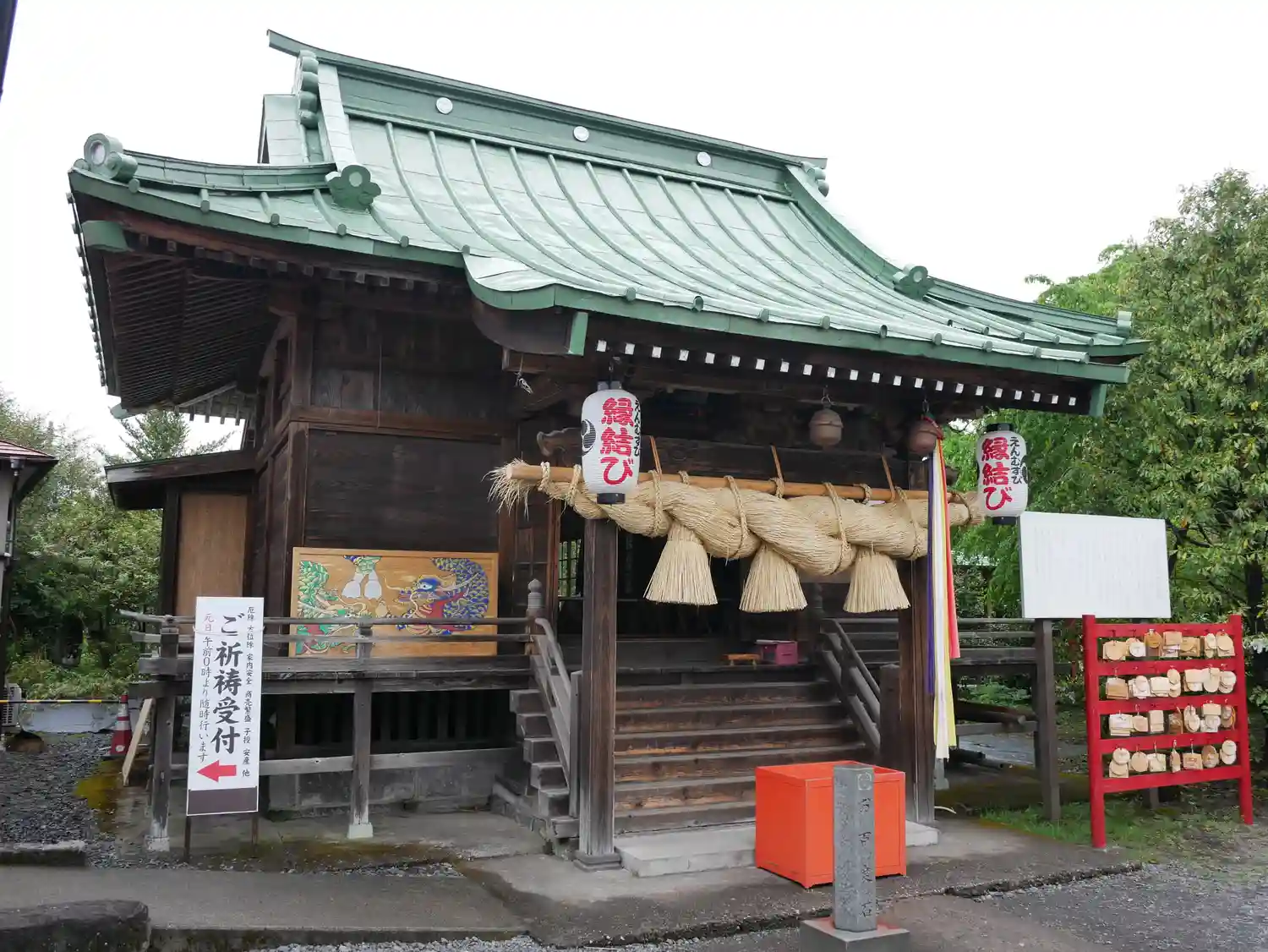 御利益は縁結び、子宝など。駐車場有り。御朱印書き入れ頂けます。