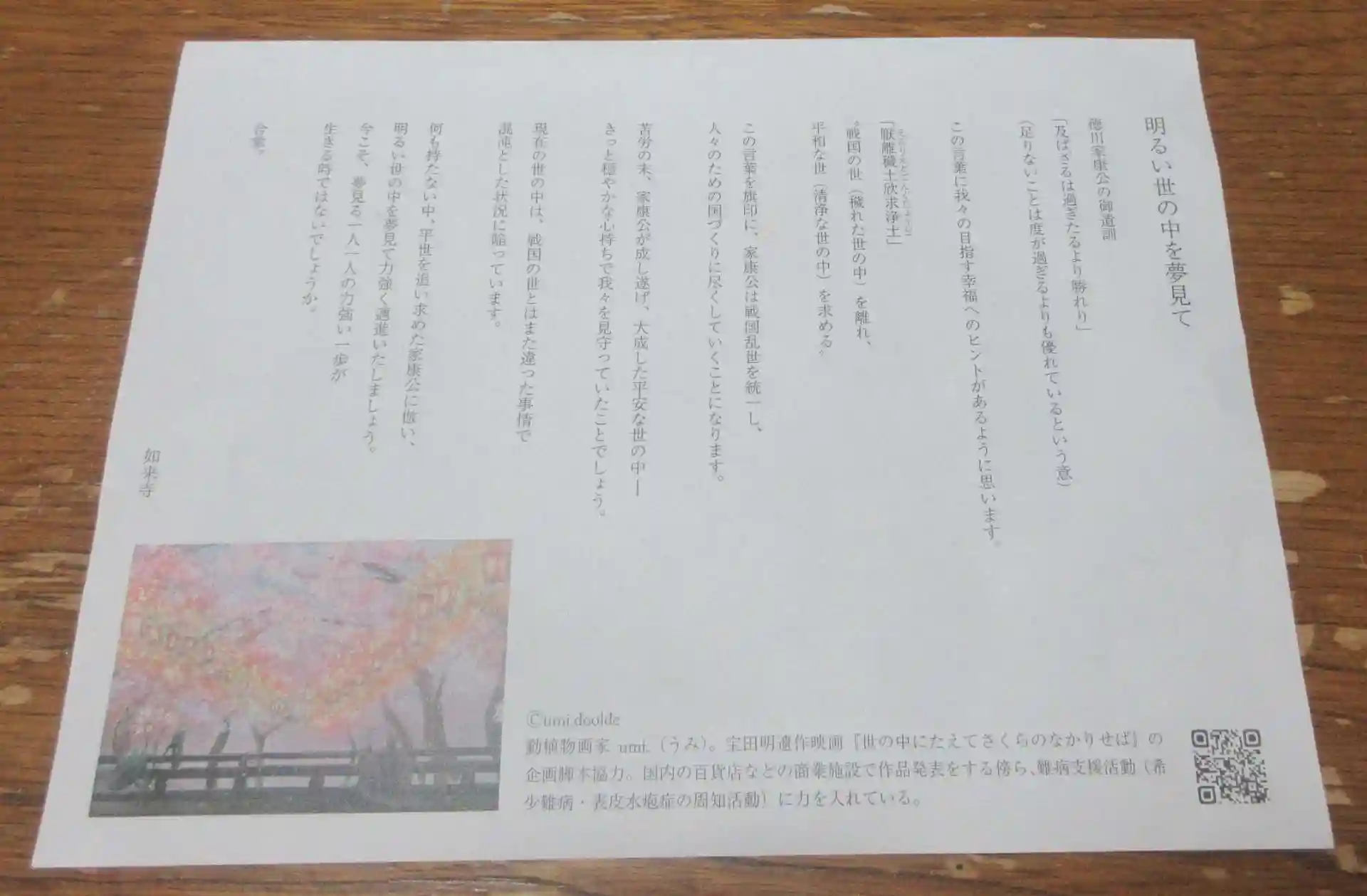 何も持たない中、平世を追い求めた家康公に倣い、明るい世の中を夢見て力強く邁進いたしましょう。