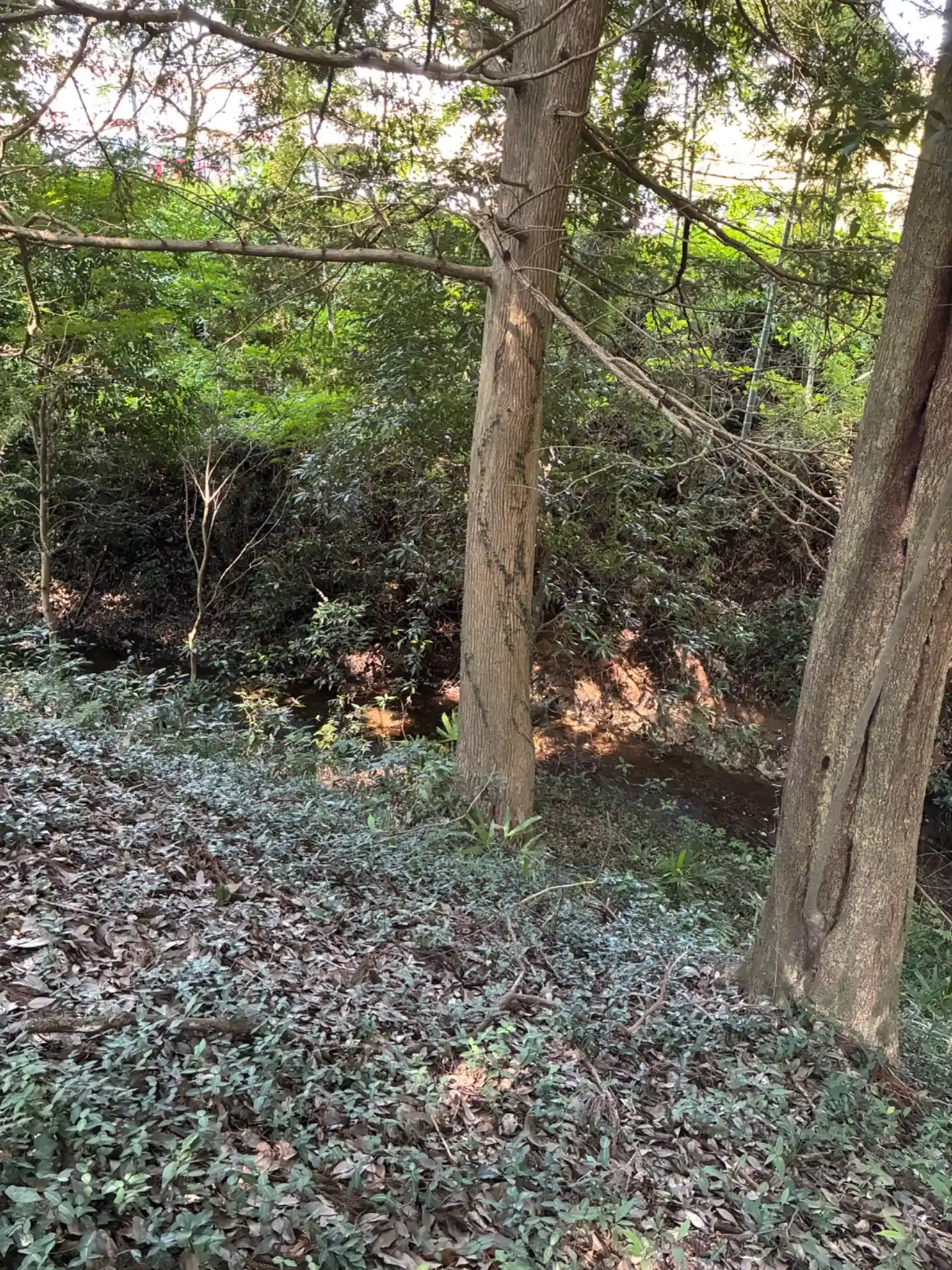 本殿裏には川