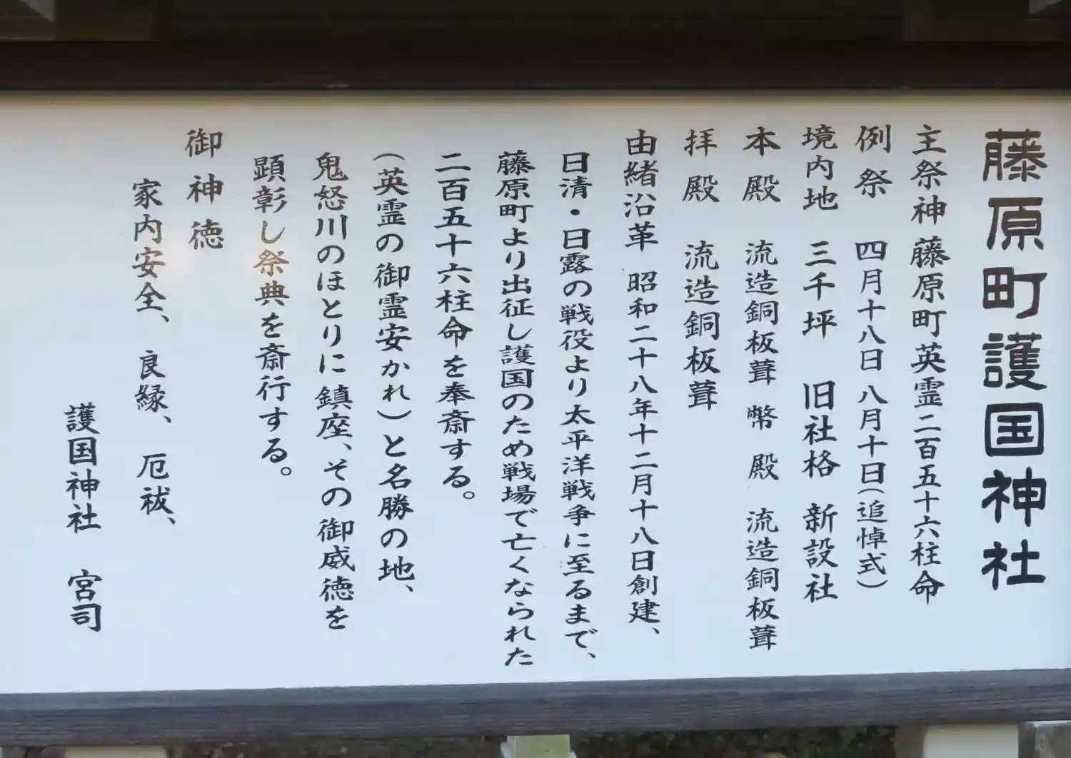 | ご祭神 | 藤原町英霊二百五十六柱命 |