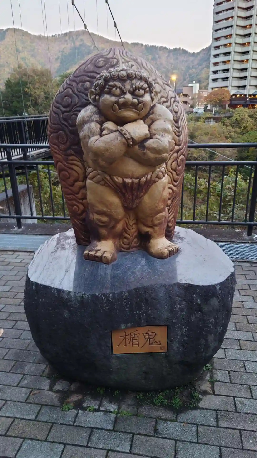 楯岩大吊橋を渡った先に、楯鬼像があります。
