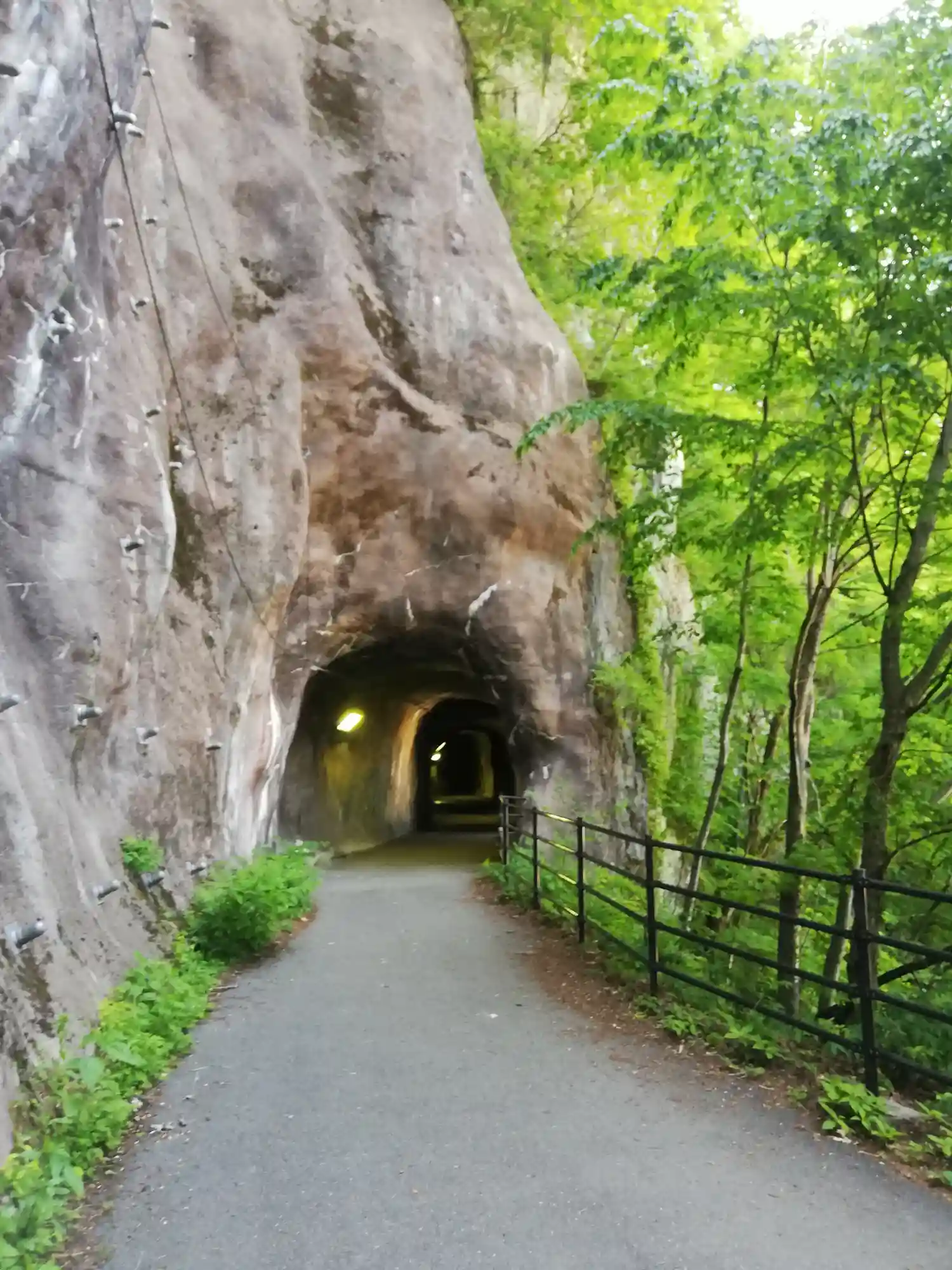 吊り橋からの遊歩道と合流すると、トンネルがみえます。
