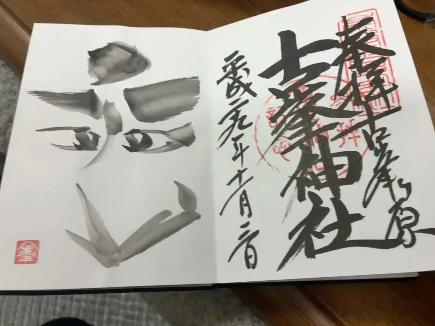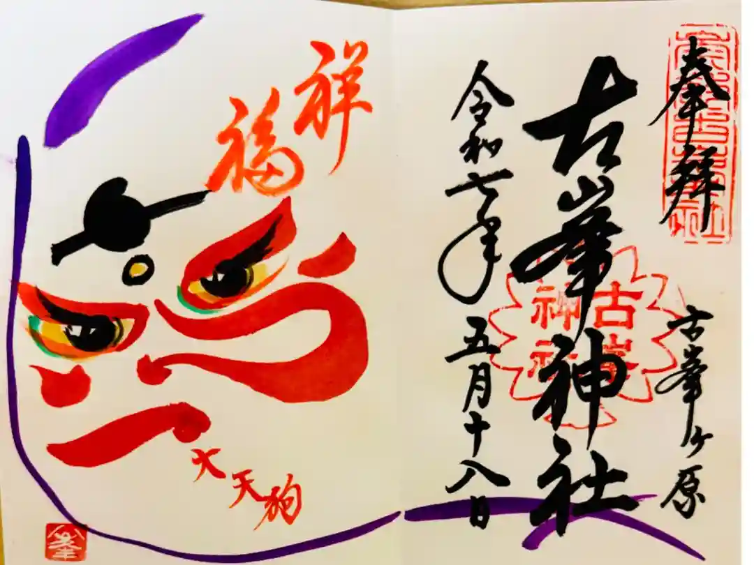 二面見開きの御朱印です。右面の真ん中に古峯神社、その右下に古峯ヶ原と書かれ、真ん中に社印が押されています。