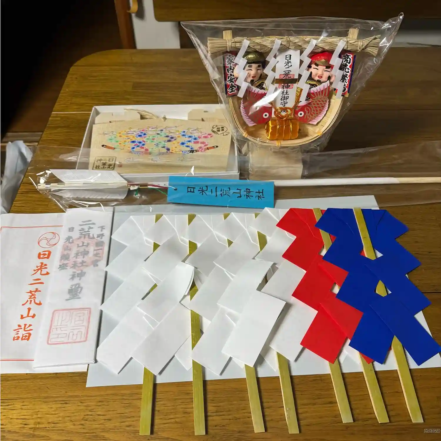 毎年恒例、崇拝神社の日光二荒山神社で新しいお札と幣束、破魔矢、福箕、絵馬を買いに行ってきました