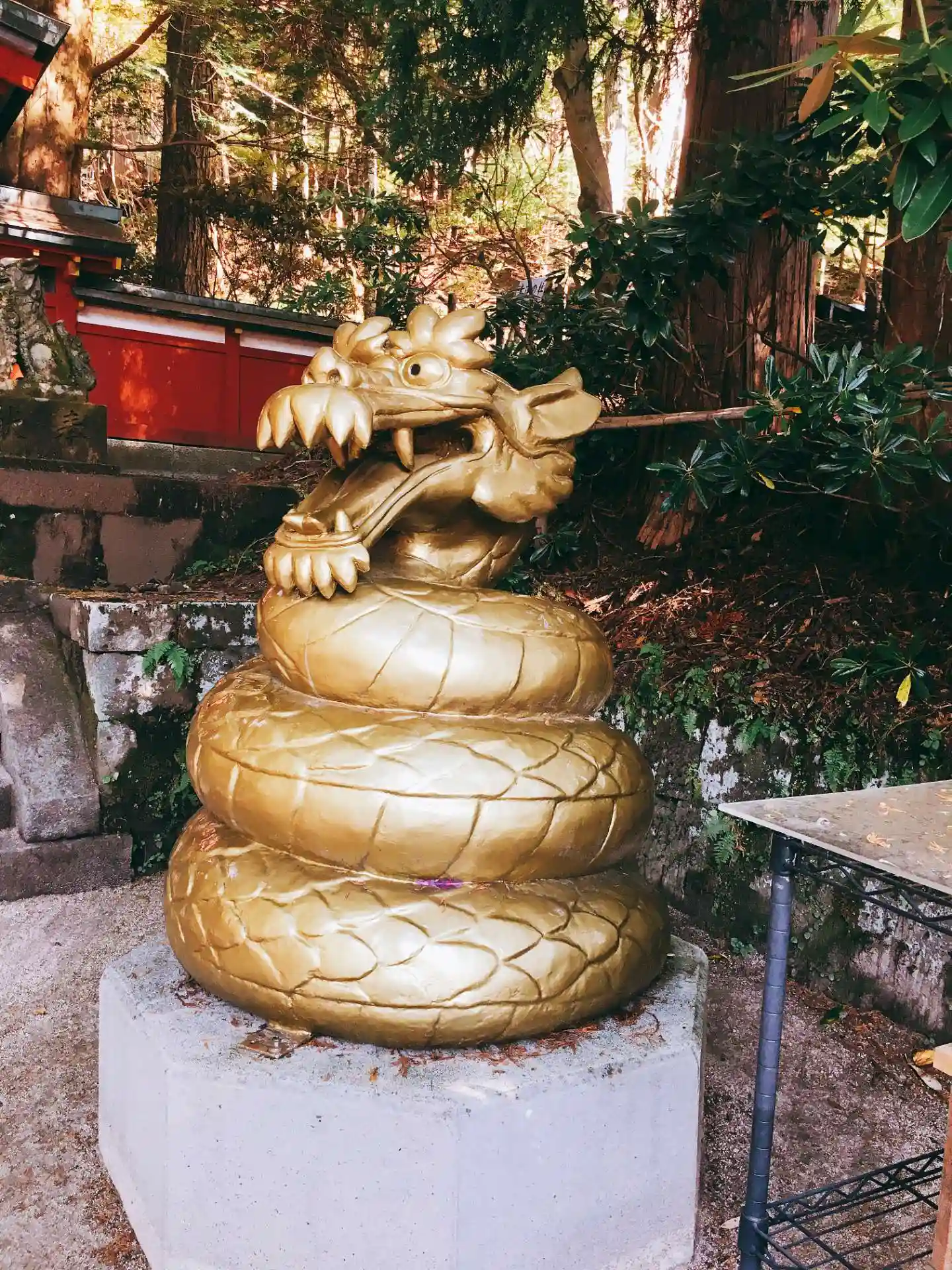 日光旅。一か所目。鳥居の横に男体山の大蛇がいました。