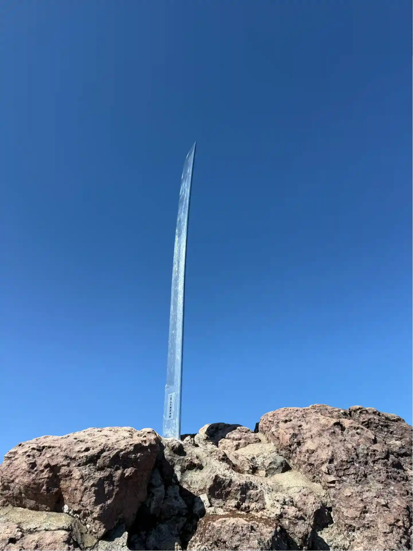 参拝させて頂きました。前日のリベンジでこの日は天気にも恵まれ、最高の登山日和でした。大剣も立派。調べたところによると元々は明治13年に奉納されたものが平成24年に折れてしまい、下野市内鉄工所に勤める人からの申し出でステンレス製で再現したとのこと。500年は持つとか。