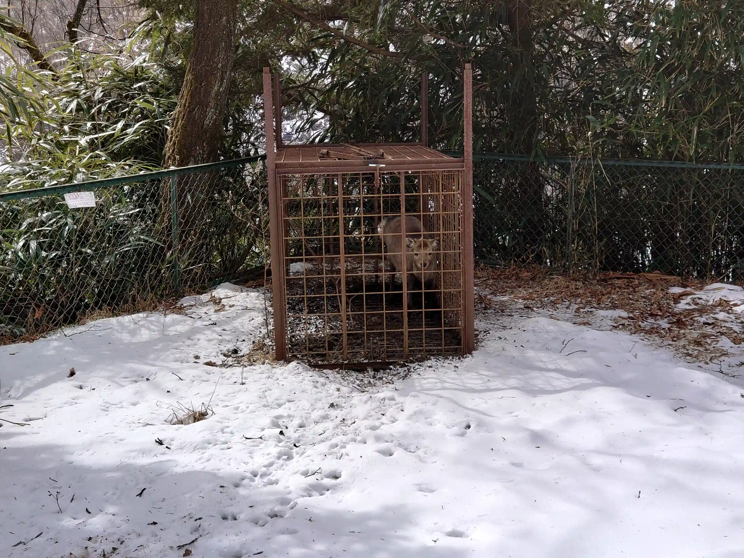 うーん、飼っているようにはみえないし、罠にかかったのですかね?