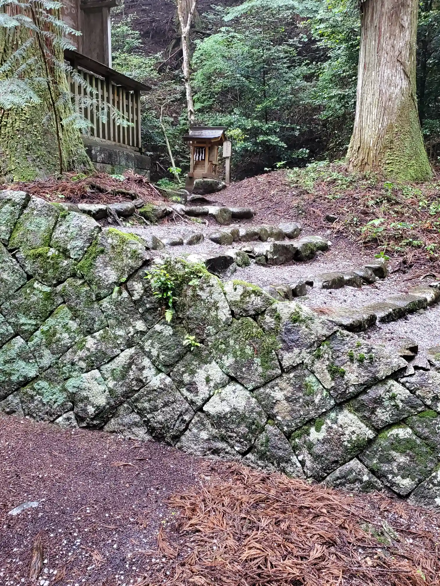 尾鑿山への登山口にもなってるのか、燈籠に石が積まれてたりケルン的な感じです