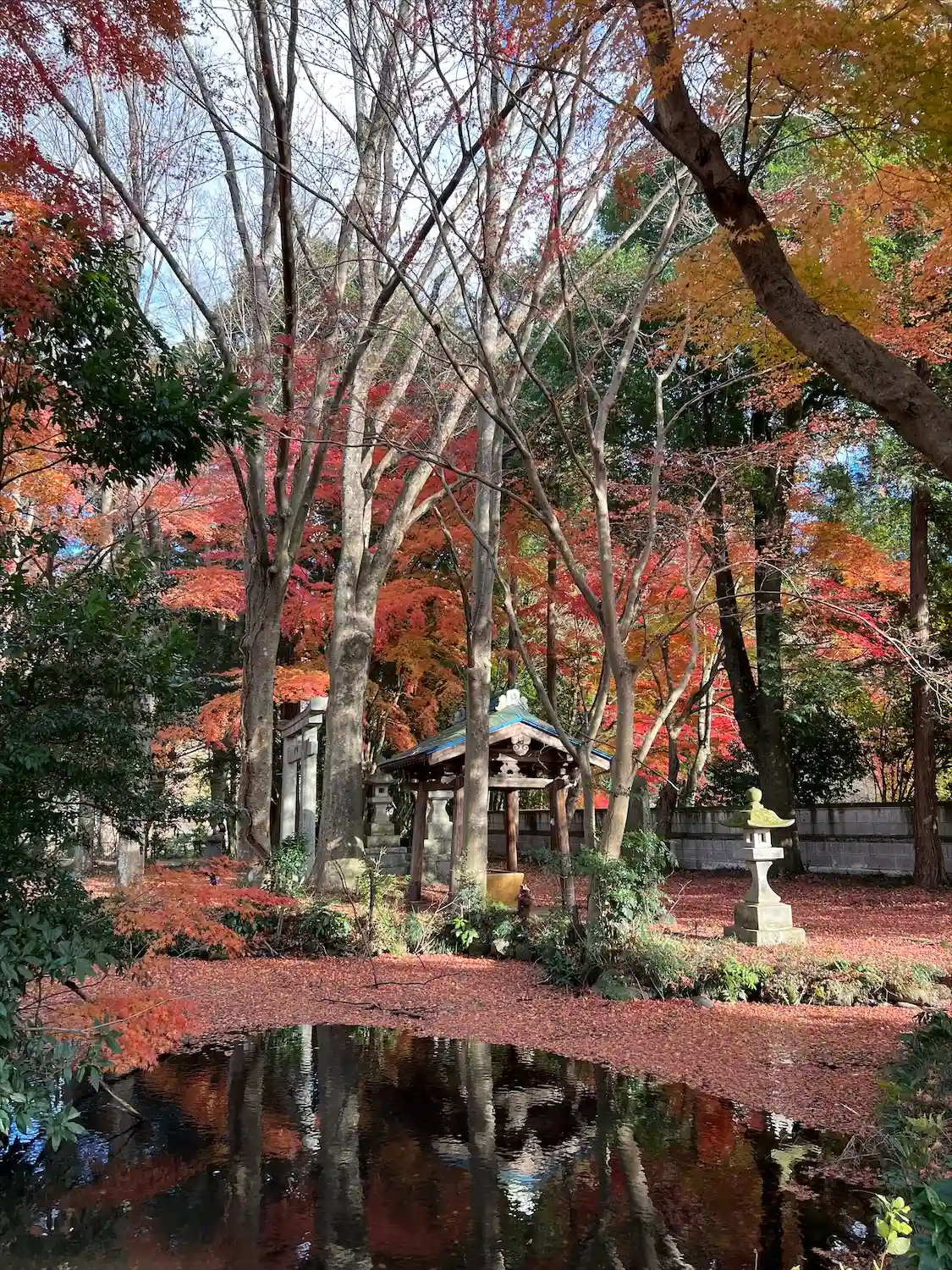 もみじの落ち葉が池面を覆っていました。