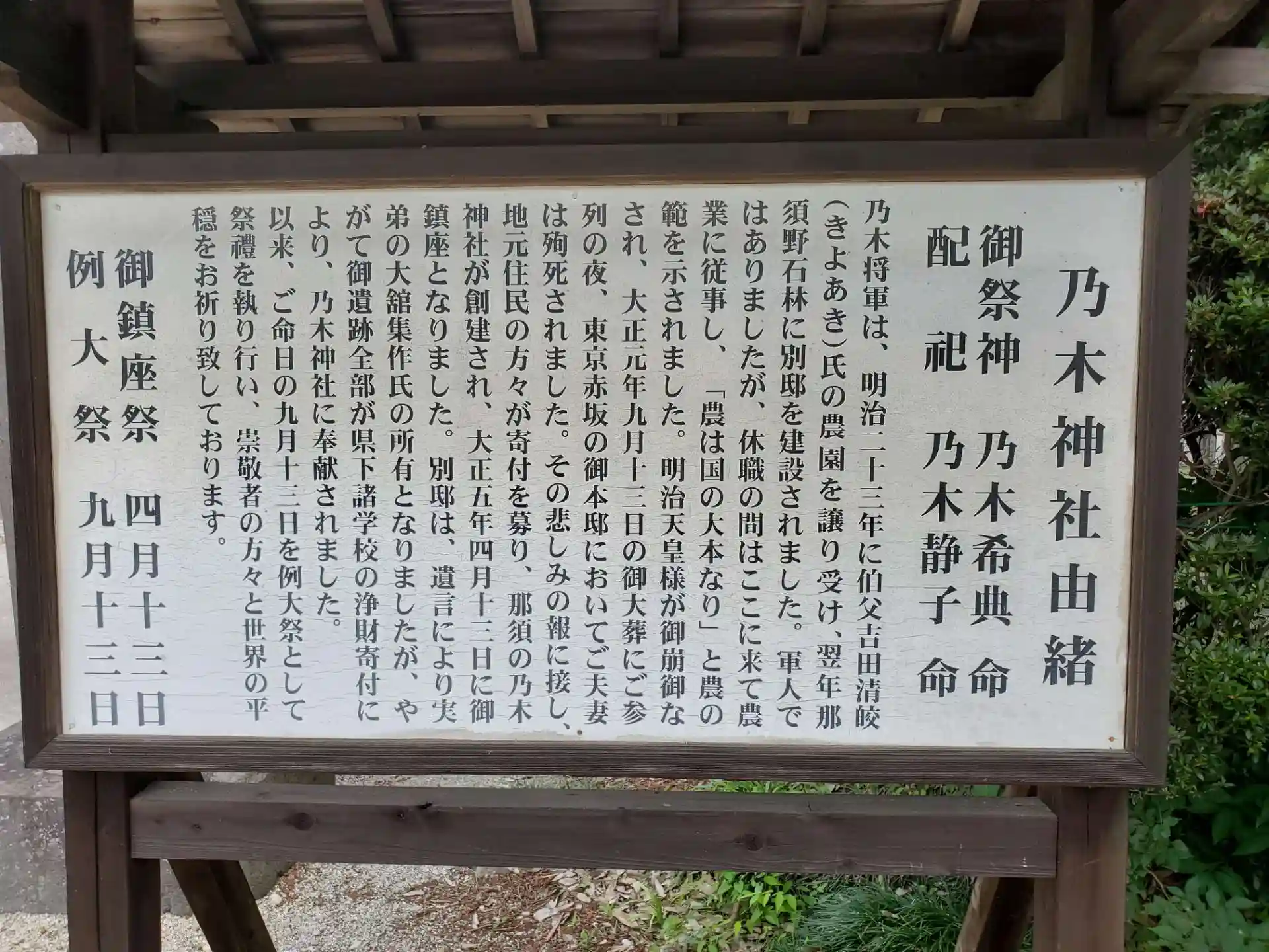 東京乃木坂の乃木神社に関連のある那須乃木神社。ご祭神が同じで、那須には余暇に農耕に来ていたらしい。
