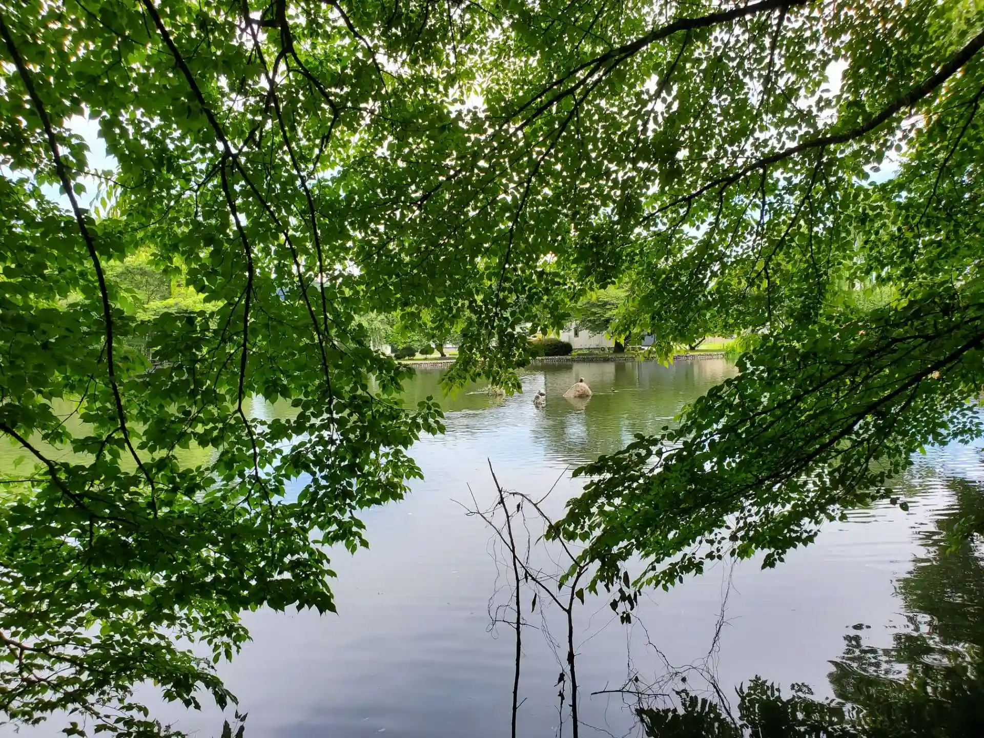 澄んだ水の小川が流れ、開放感のある境内、そして、その隣には散歩にもってこいの森、池があり、鳥のさえずりや小川の流れる音が心地よかった。