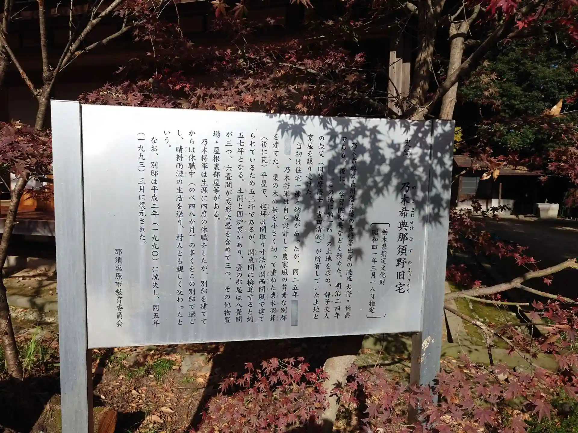 乃木希典那須野旧宅(乃木別邸)案内板