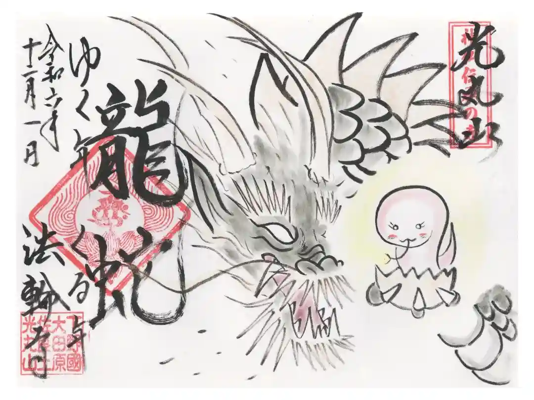 龍の切り絵御朱印です。下の紙に細かく色をつけてあり、2枚揃って完成する美しい切り絵です(o´艸`o)♪
