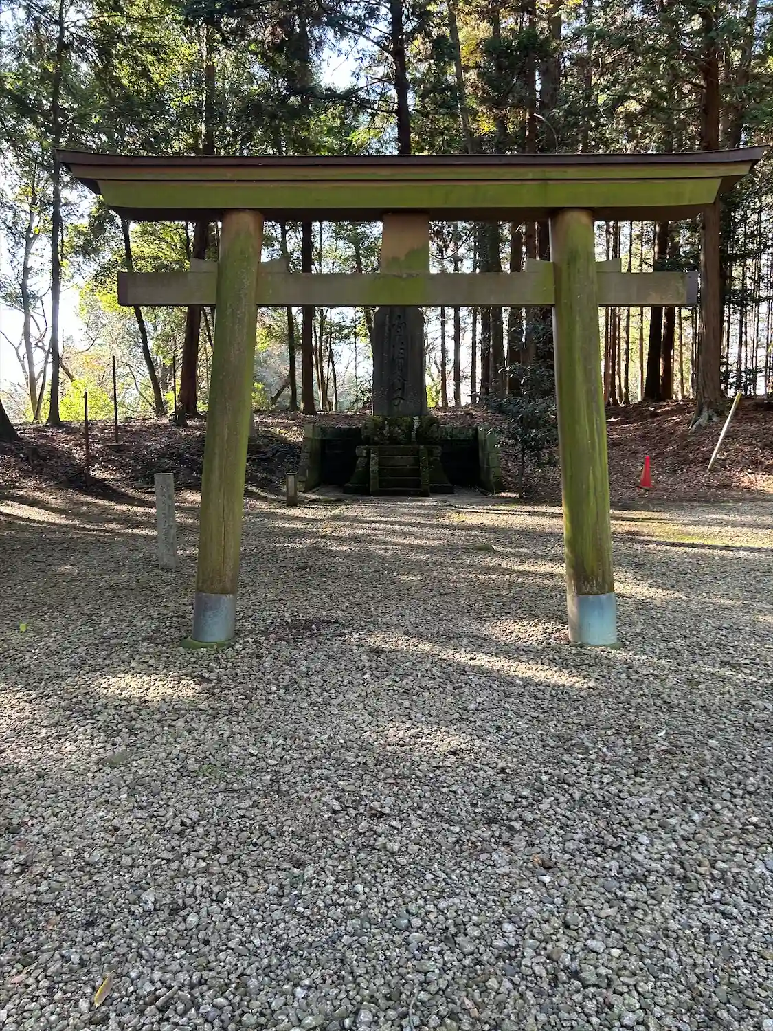 林の中に祠があります。
