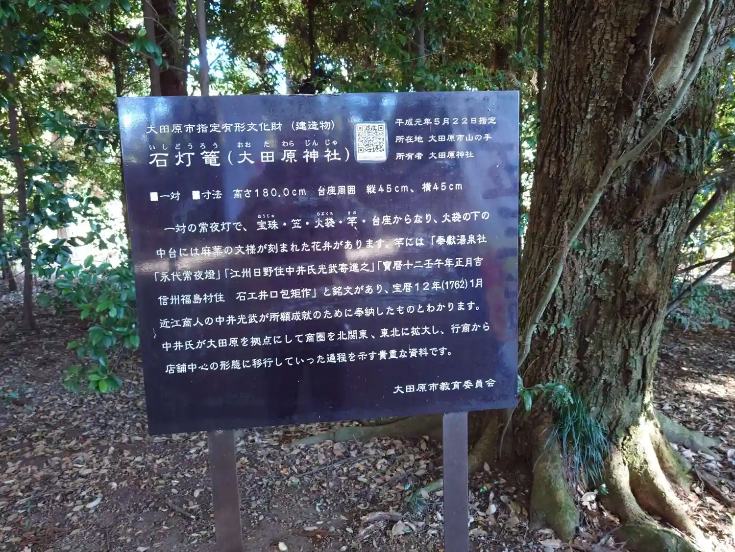 寶暦十二年(1762)奉納の燈籠(市有形文化財)
