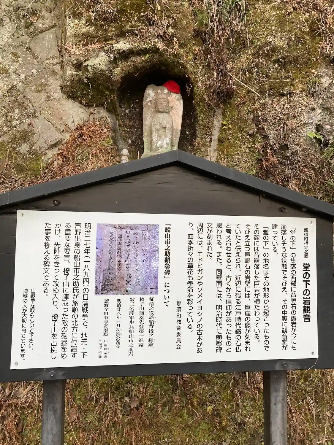 芦野石に掘られた観音様。地元の方々が手厚く管理してくれています。