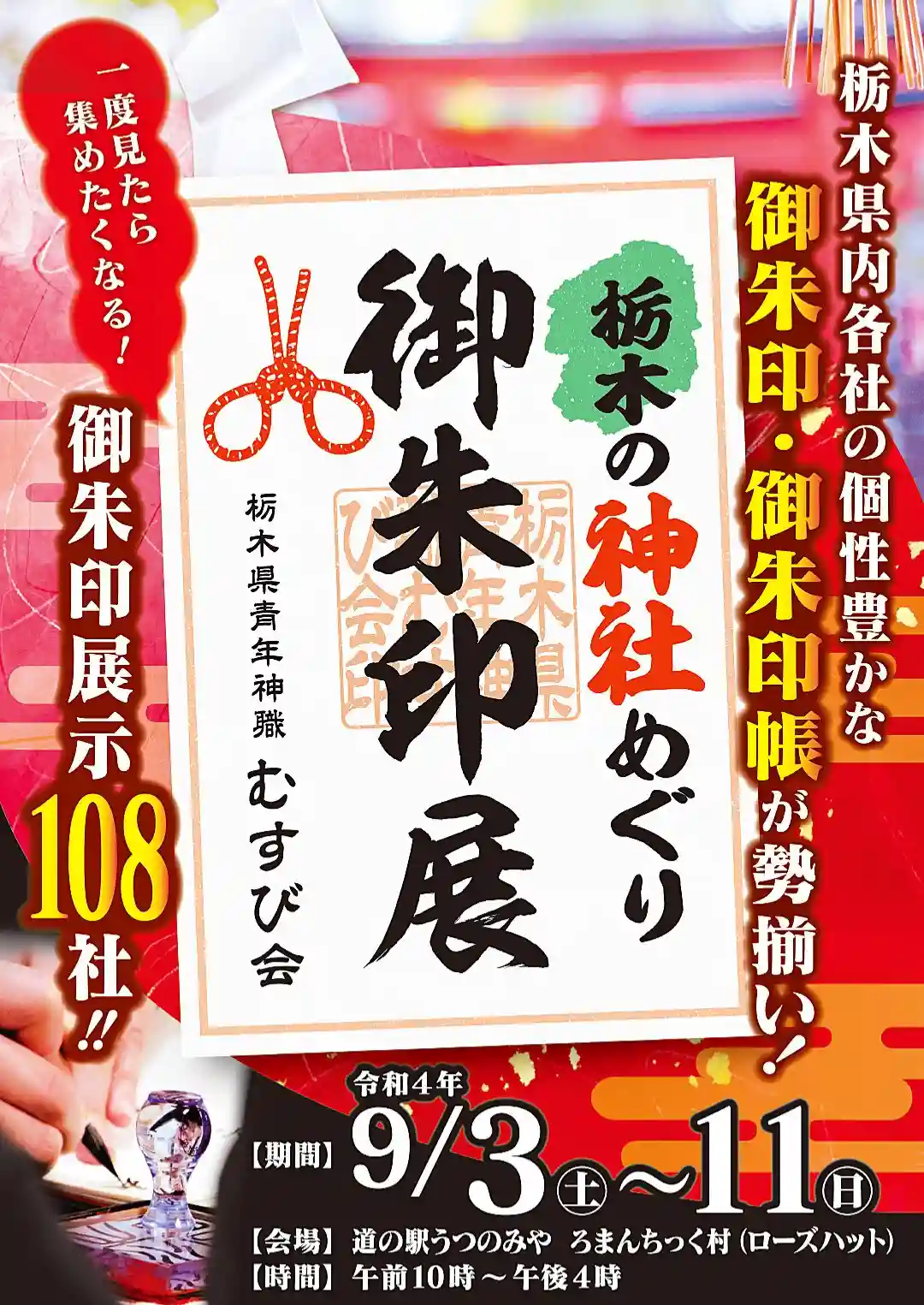 今回は過去最多となる県内神社『108社』の御朱印が展示されます。