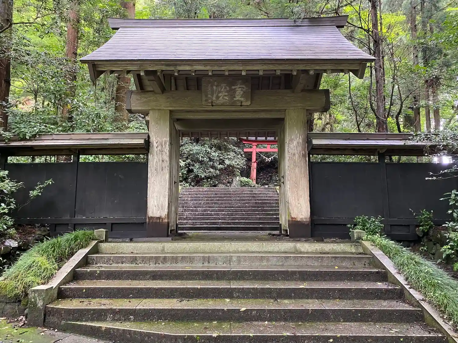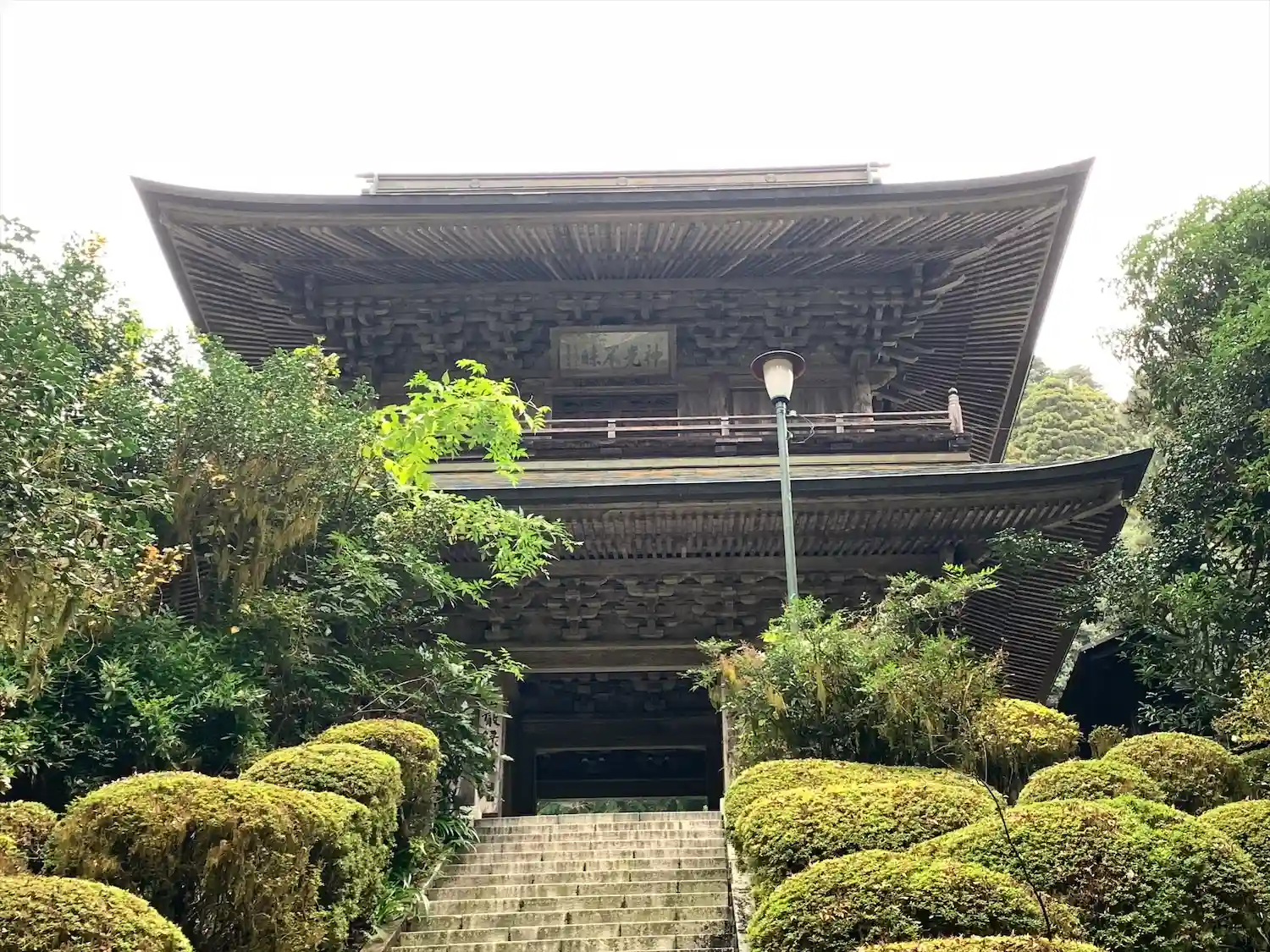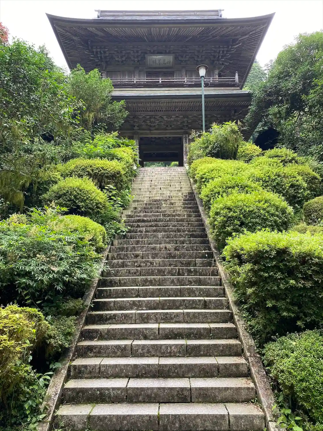 階段の上に山門が見えます。