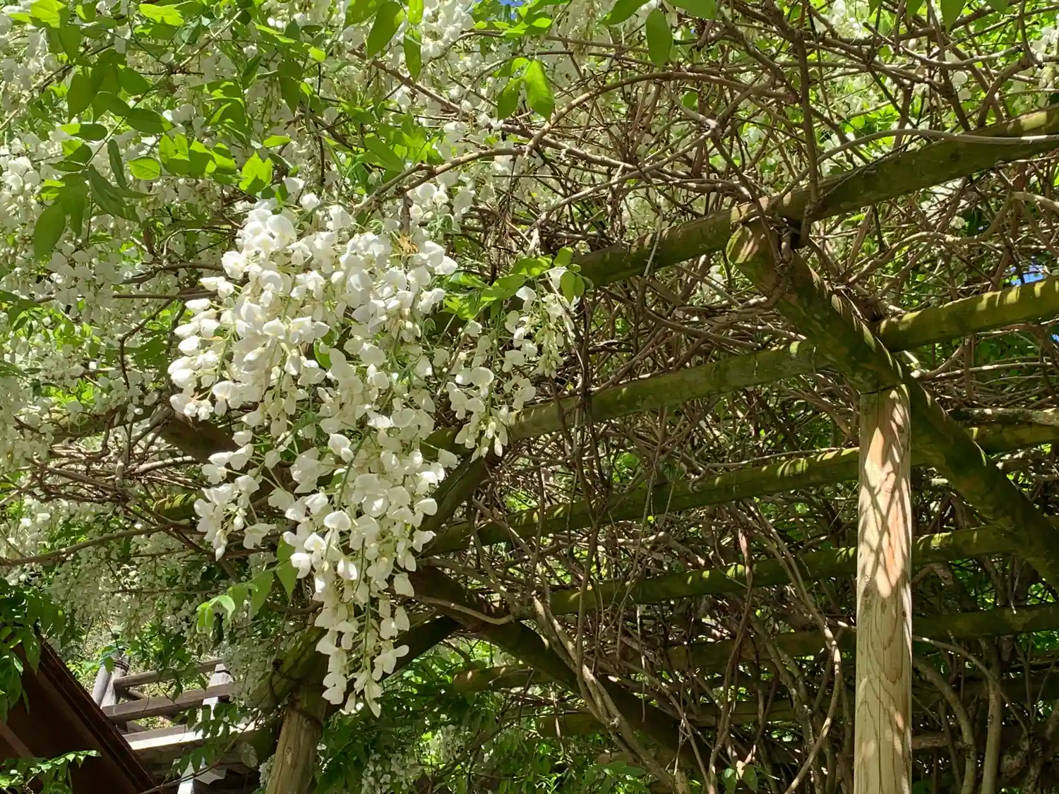 白藤の良い香りがあたりに漂って、蜂もブンブン飛んでます。
