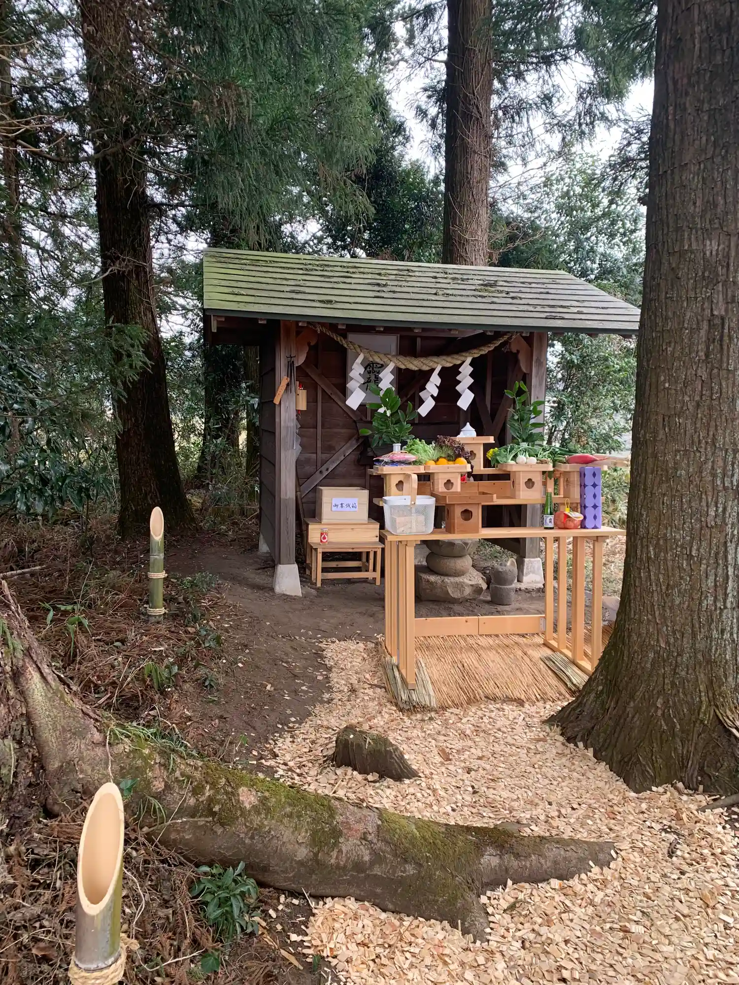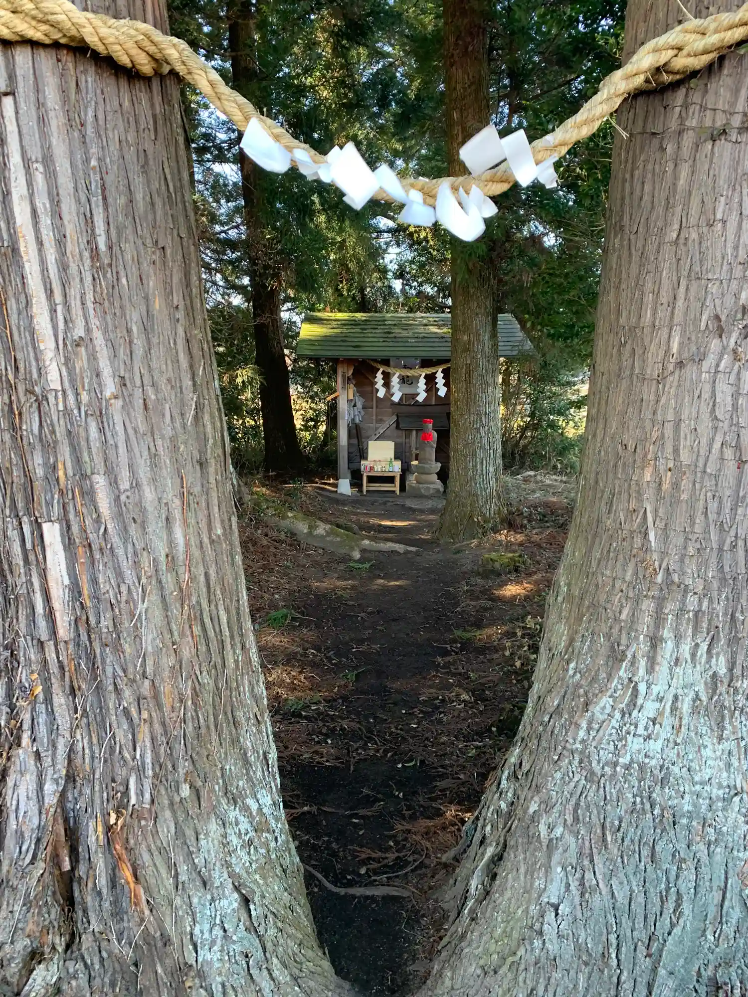 2本の杉が鳥居のように立ち、ここから神域である雰囲気を出しています。