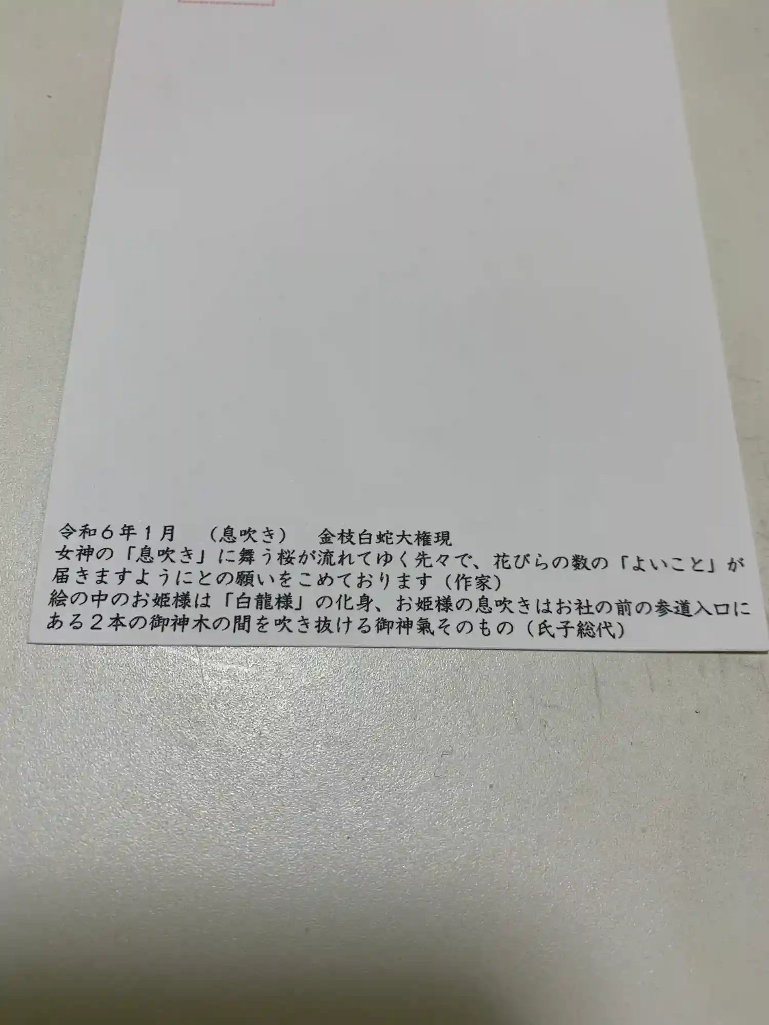 氏子総代が作ってくれた、ポストカード。