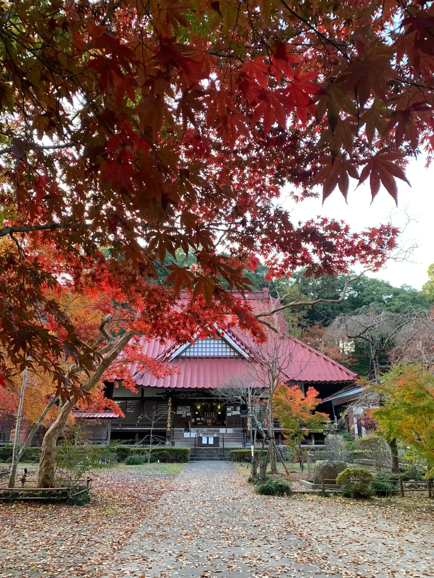 あちらの赤い観音堂と紅葉の赤が重なって綺麗でした。