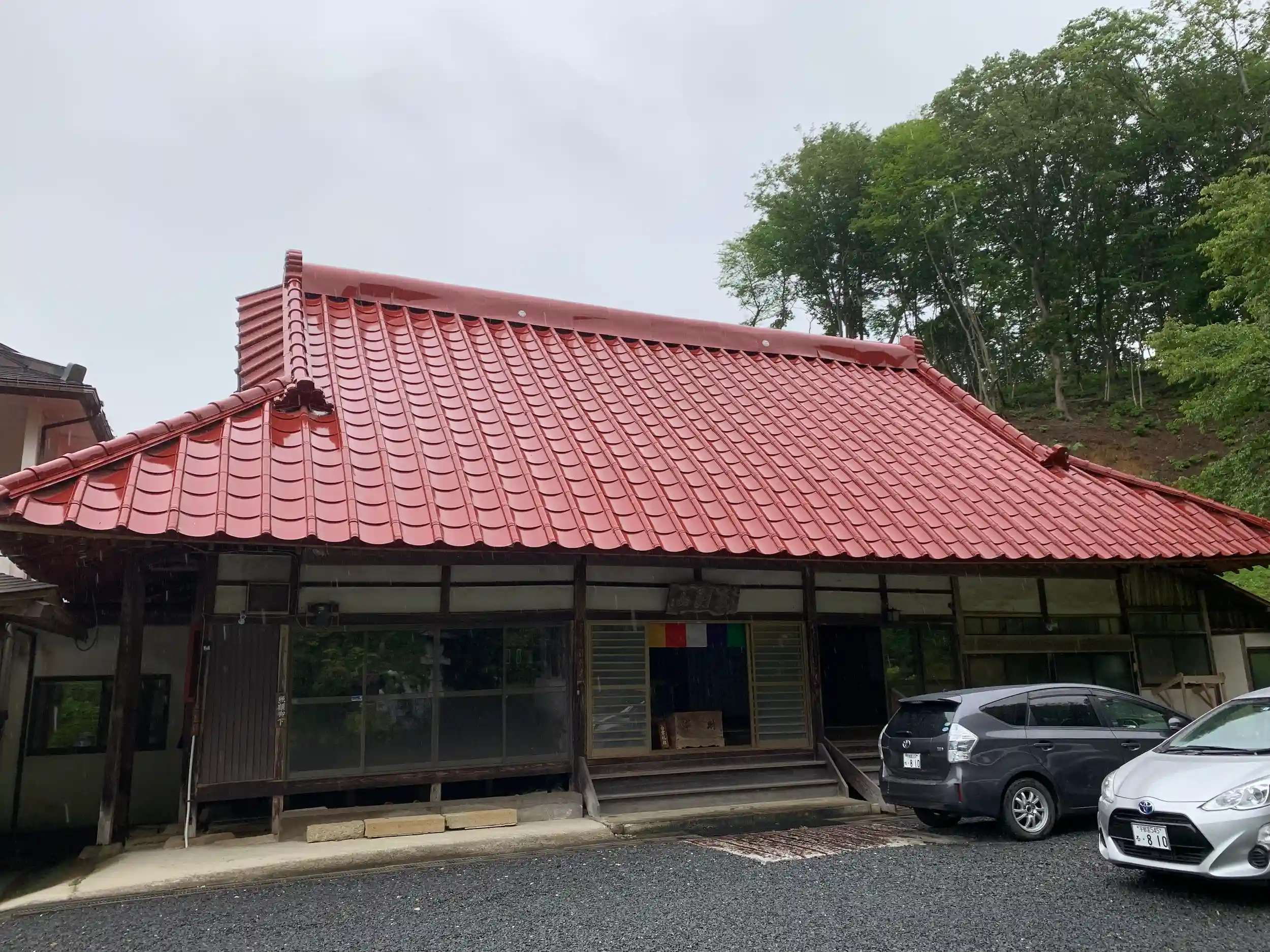 雨が降り、夕方にもかかわず、車が境内に入ってくるのを見て、奥様が本堂を開けて待っていてくれました。