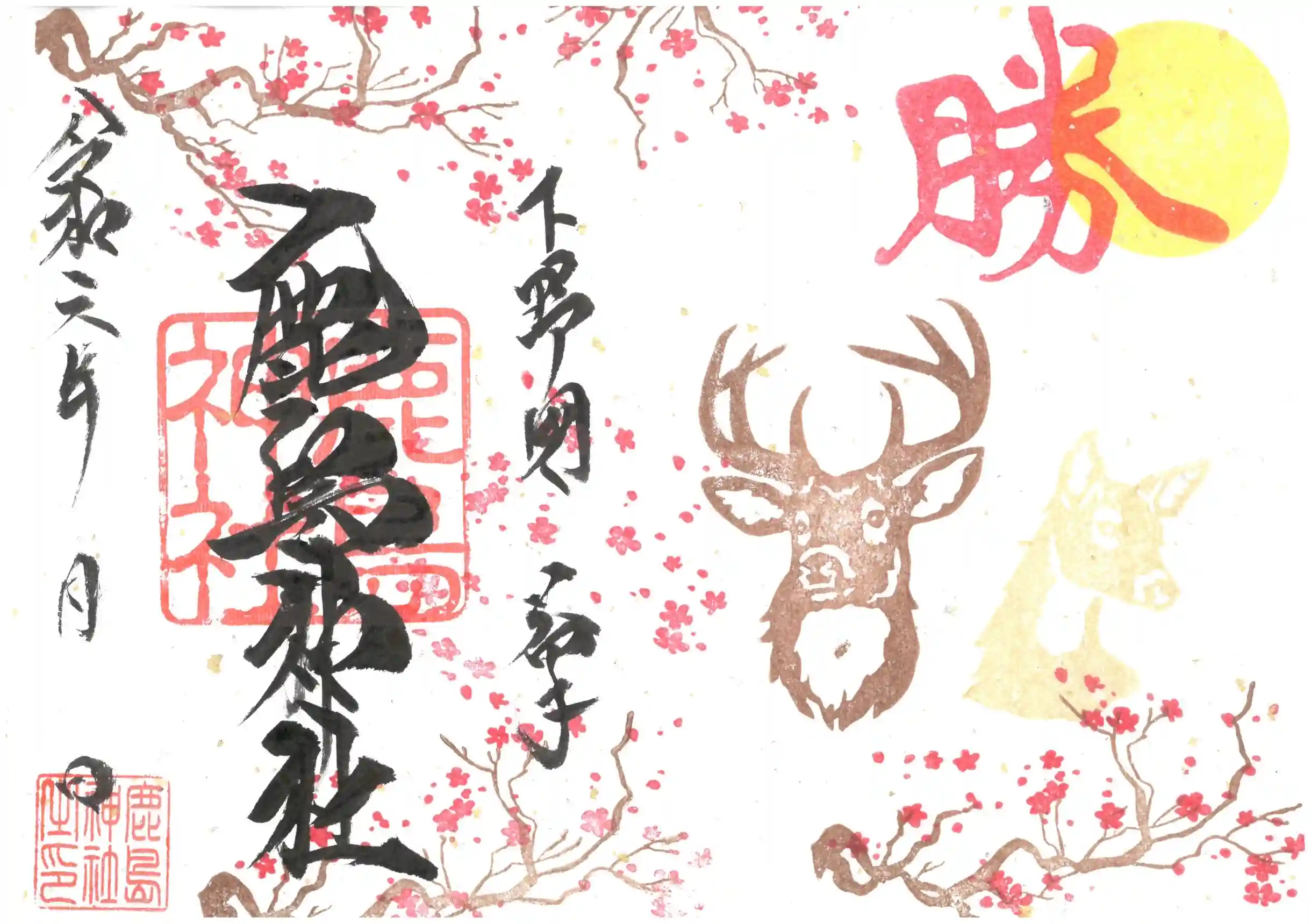 型抜き御朱印については年明けに親子鹿へ切り替わりました。