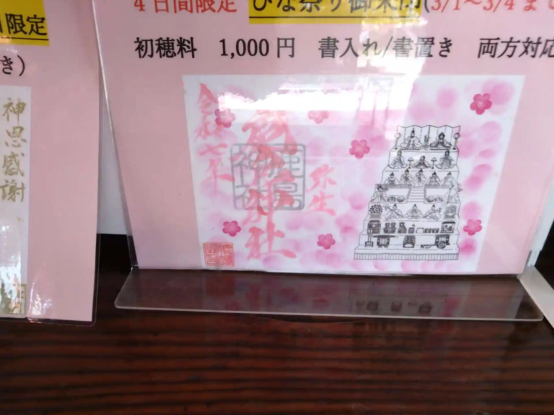 ひな祭り御朱印 直書き 1000円
