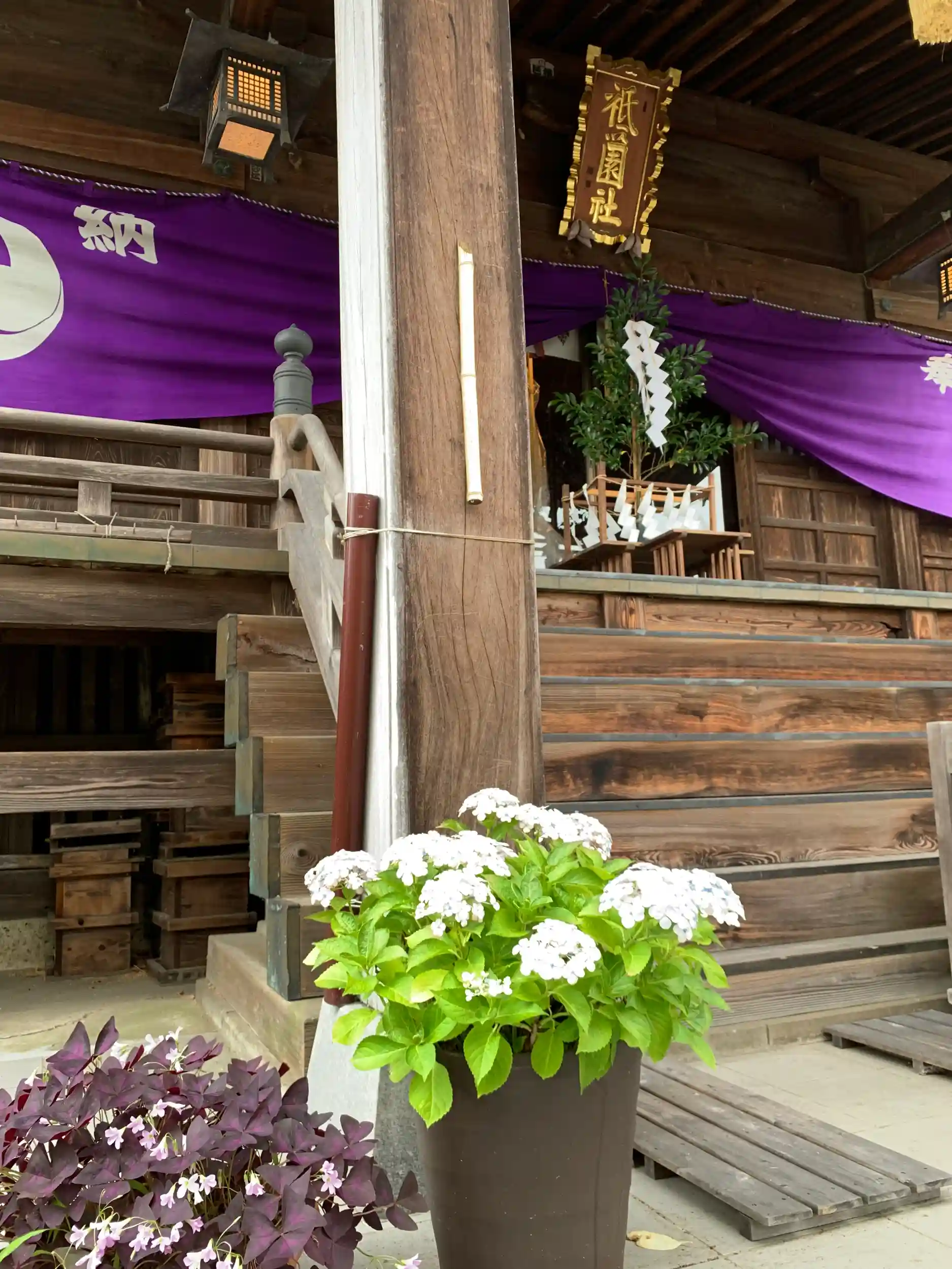 雨の中、朝顔のポットをあちこちにに置いて境内を飾っているところでした。ホームページには「朝顔をいっしょに育ててみませんか」の呼びかけが書いてありました。小学生の時、育てた朝顔の栽培は意外と難しいものですが、楽しみの作業として取り組みましょう、夏の朝顔は一日の元気の源になるでしょぅ(^^)とのこと。朝顔かぁ、いいですね〰