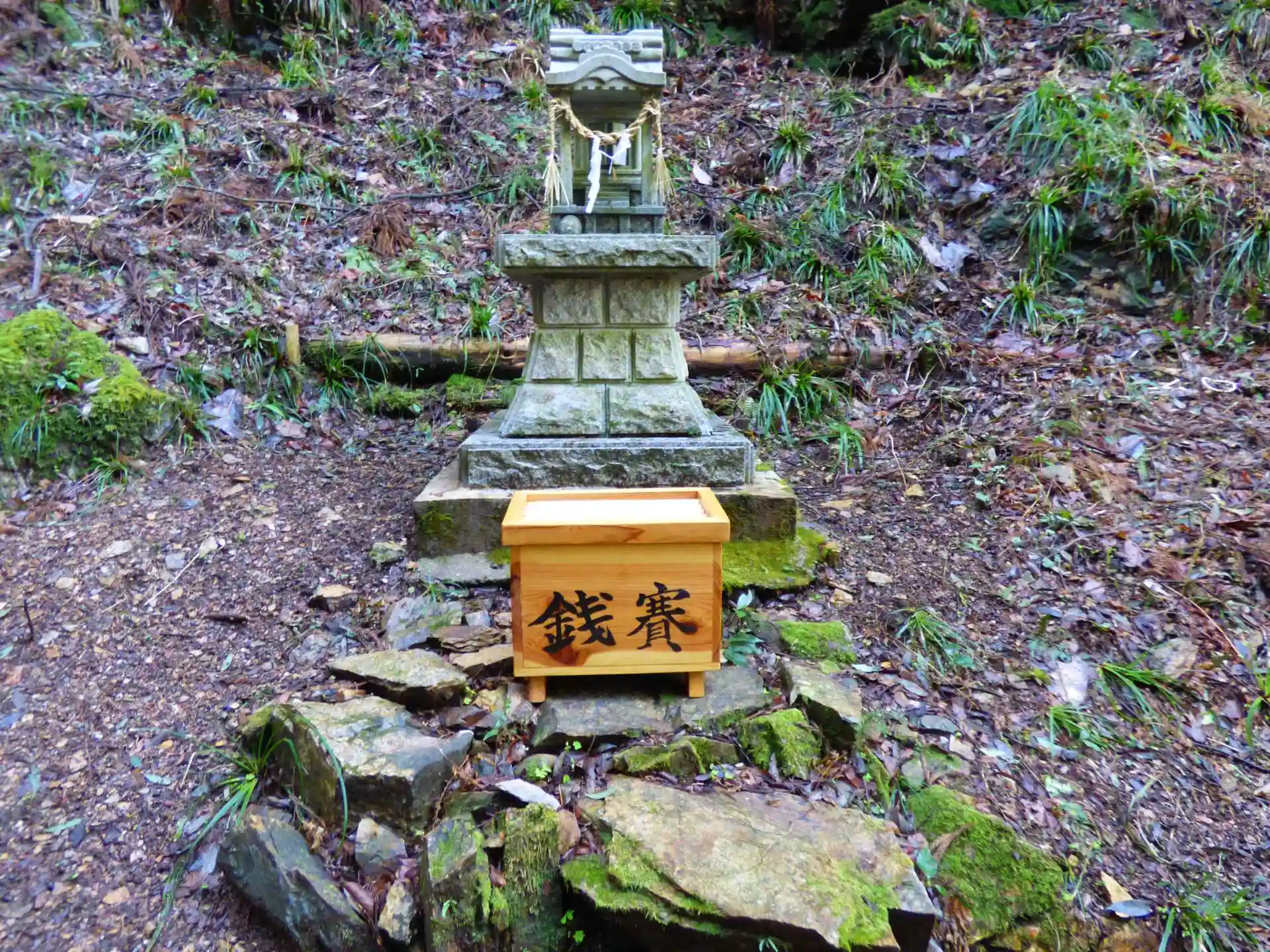 この神社は、3年前にミツマタ群生地の上部にある雷電岩をご神体とする神社をつくり、ミツマタ群生地をはじめ地域全体を雷などの災害から守ってもらおうという趣旨でミツマタ保存会が建立したものだ。(引用)