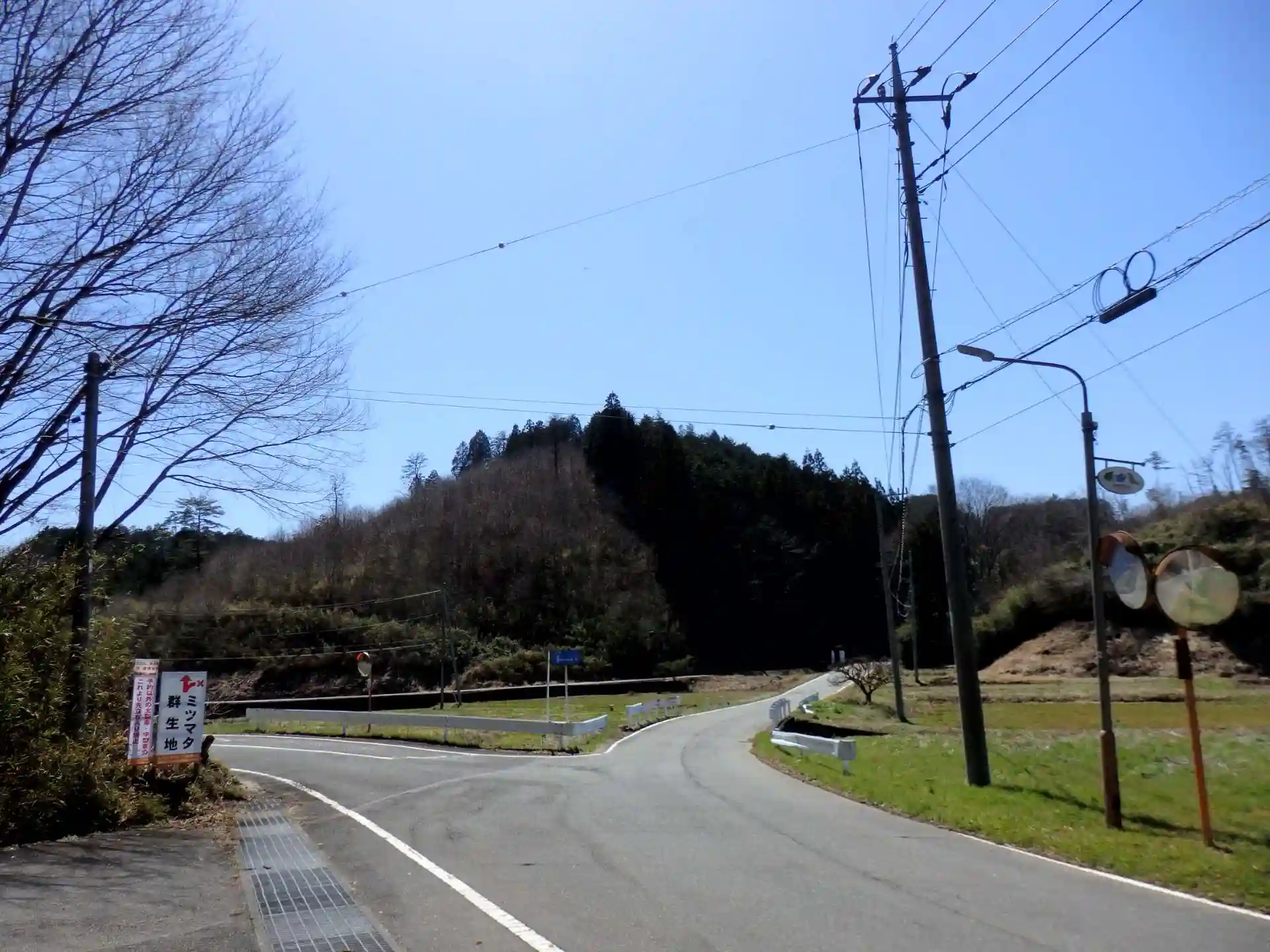土地感の無い人は茂木駅から目指すと判り易いと思われます車で約10分です。茂木駅→日産茂木試験場(写真右側の看板)→ミツマタ群生地駐車場看板がキーワードかな?