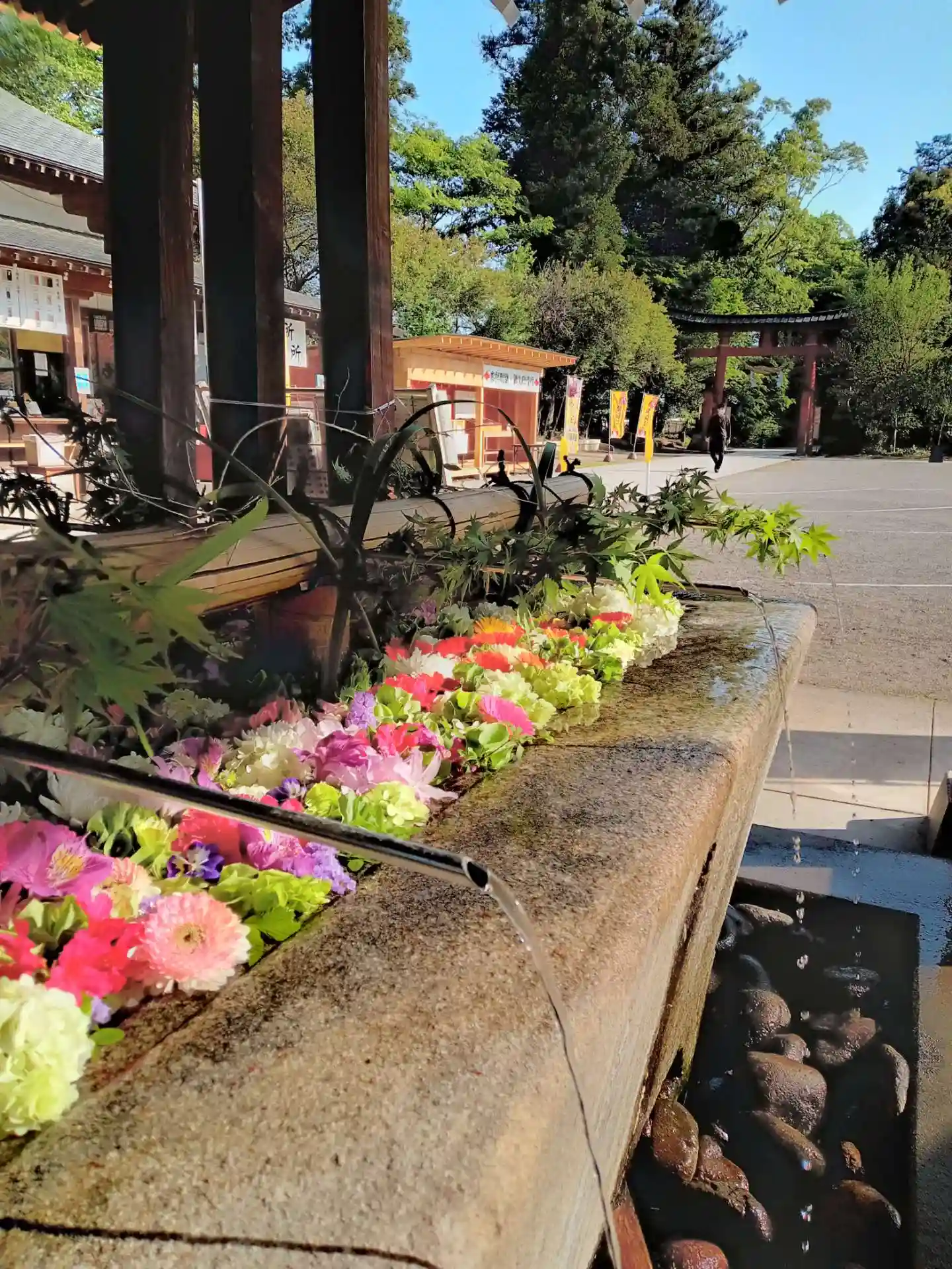 当社では初めて手水舎にお花を浮かべました。