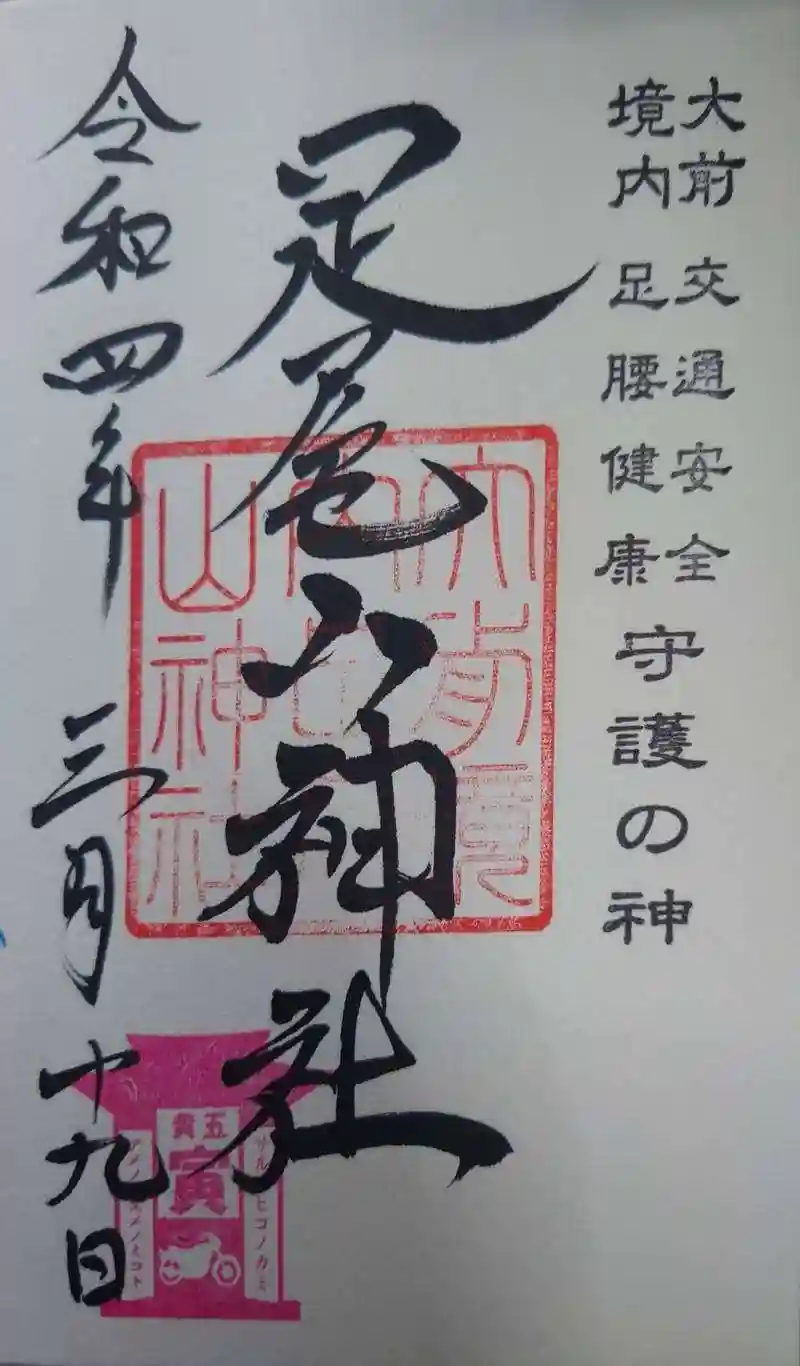 境内社の足尾山神社の御朱印を直書きでいただきました