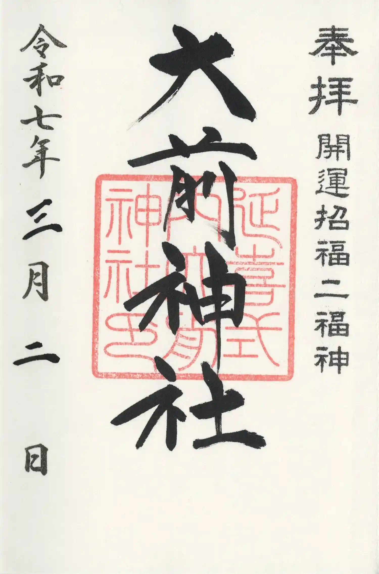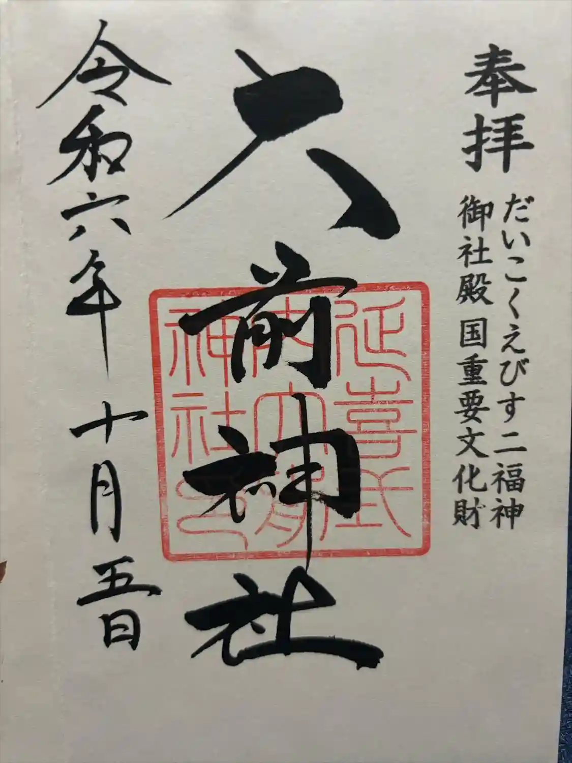 大前神社の花手水めぐり御朱印を書置きでいただきました。