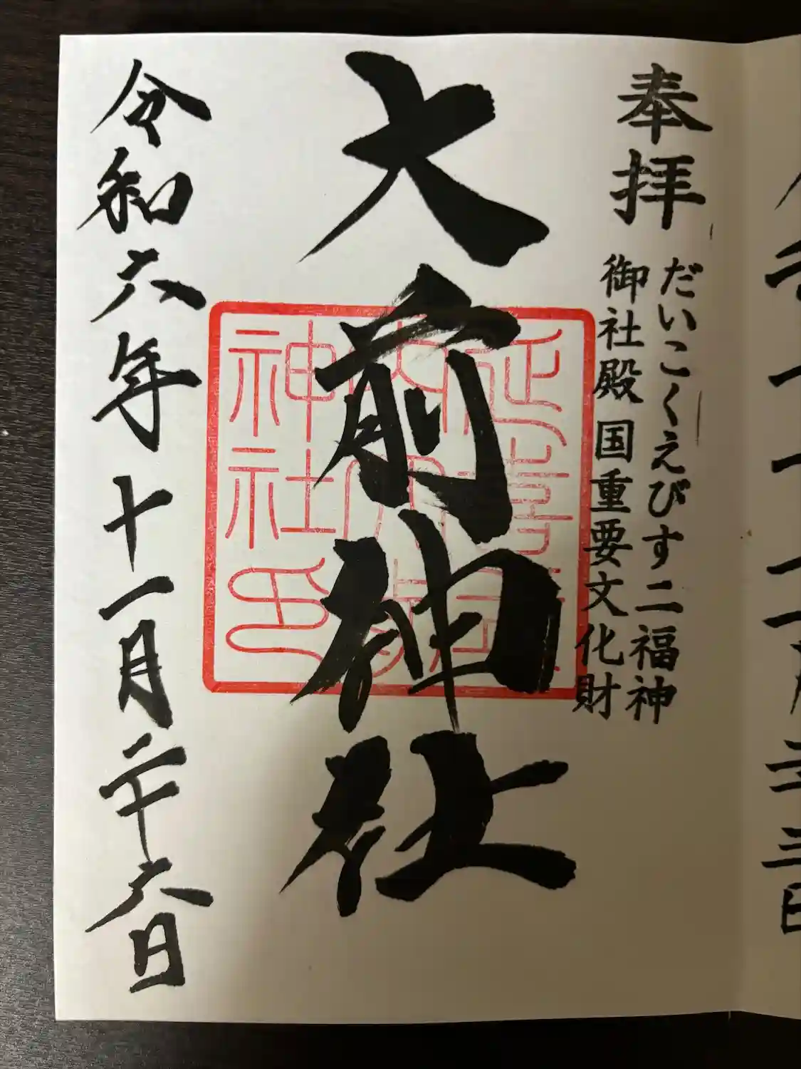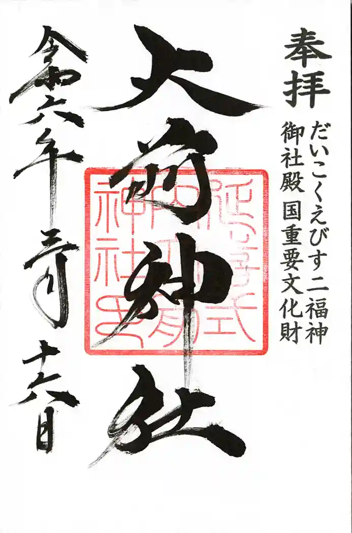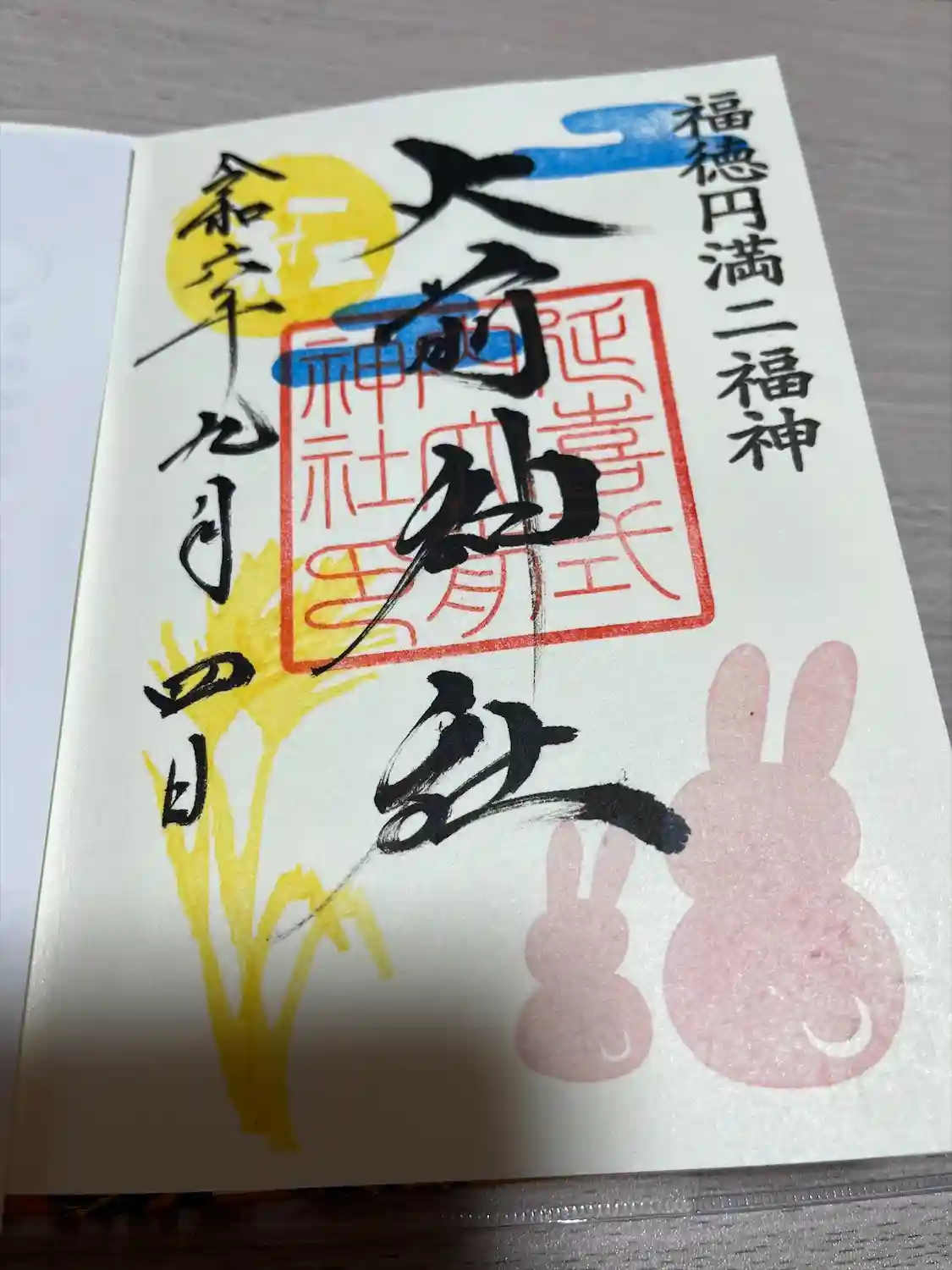 だいこく様と兎柄箔押し御朱印