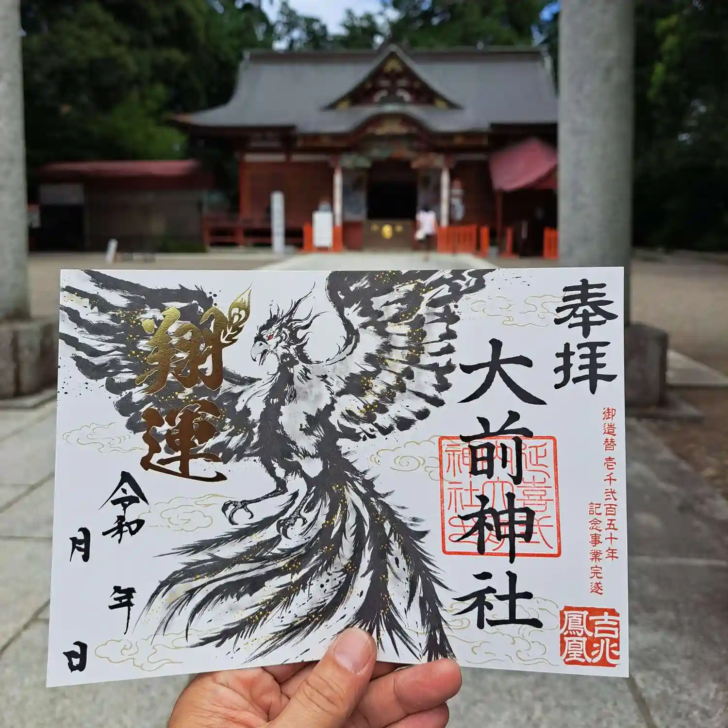 大前神社⛩に八月限定の鳳凰の御朱印を頂きに母と二人でお参り致しました。