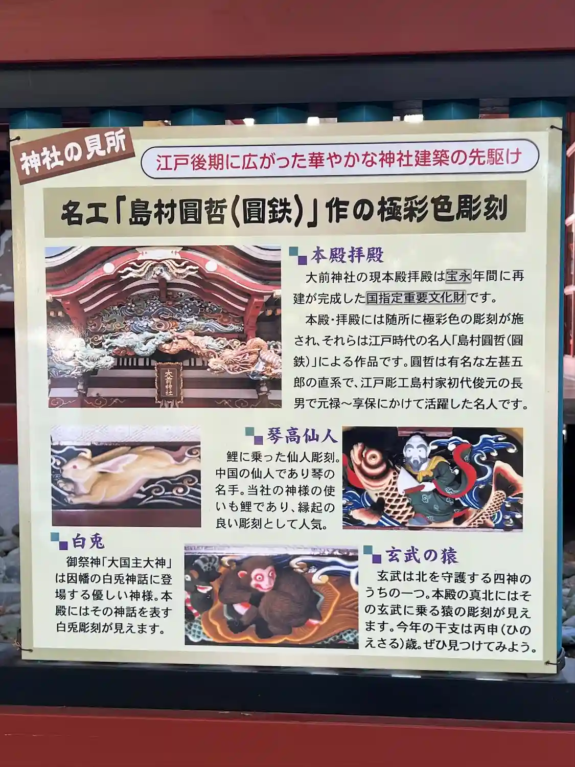 社殿の彫刻にも見入ってしまいます