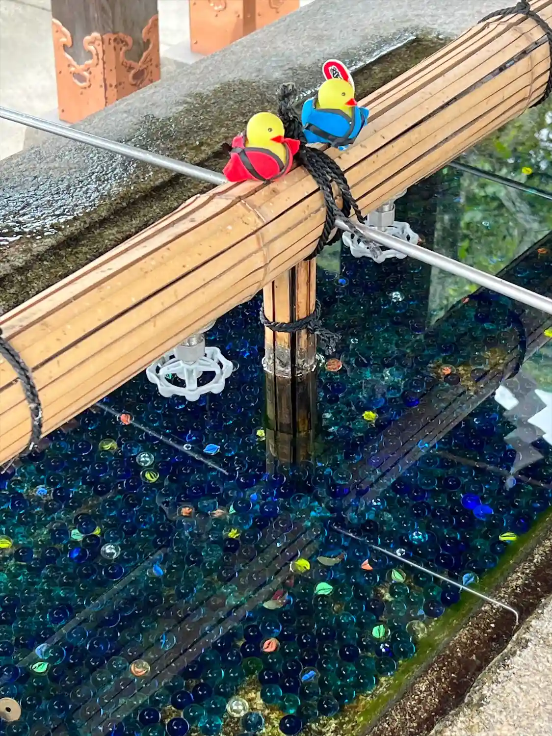 えびす様の足元にも拝殿があり、鈴で清めてから参拝します。