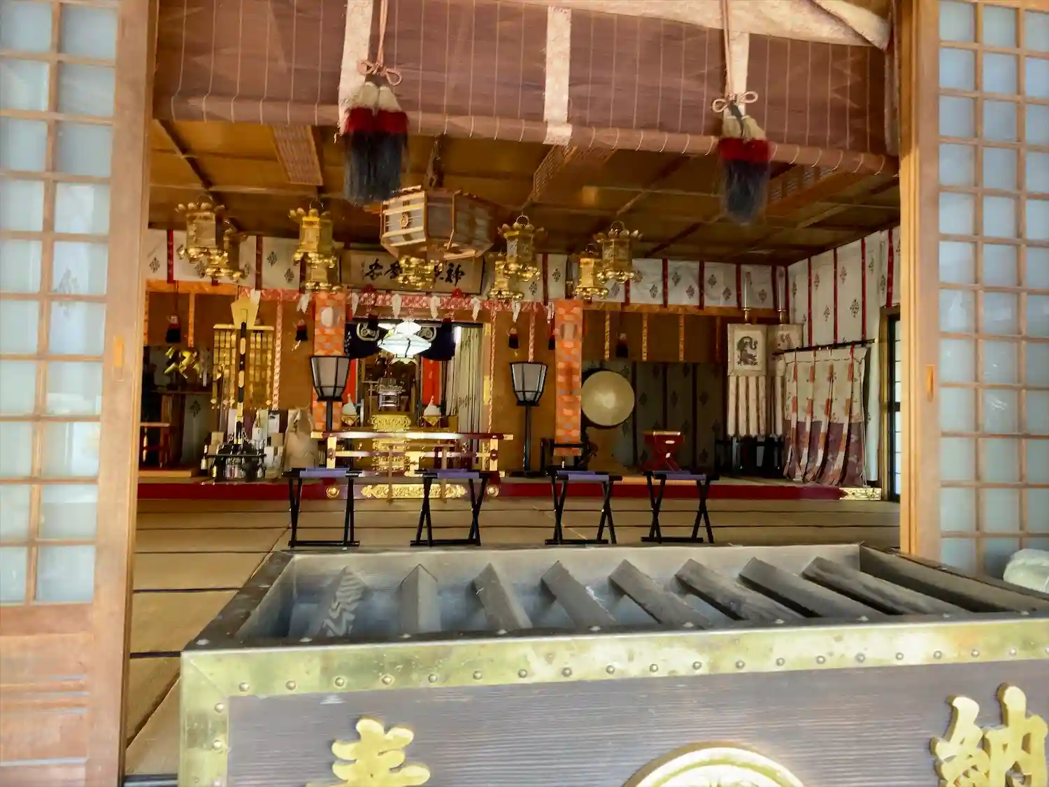 本殿には木像の八臂辨財天座像を御神体として祀っており、神仏習合時代の色合いを残している。
