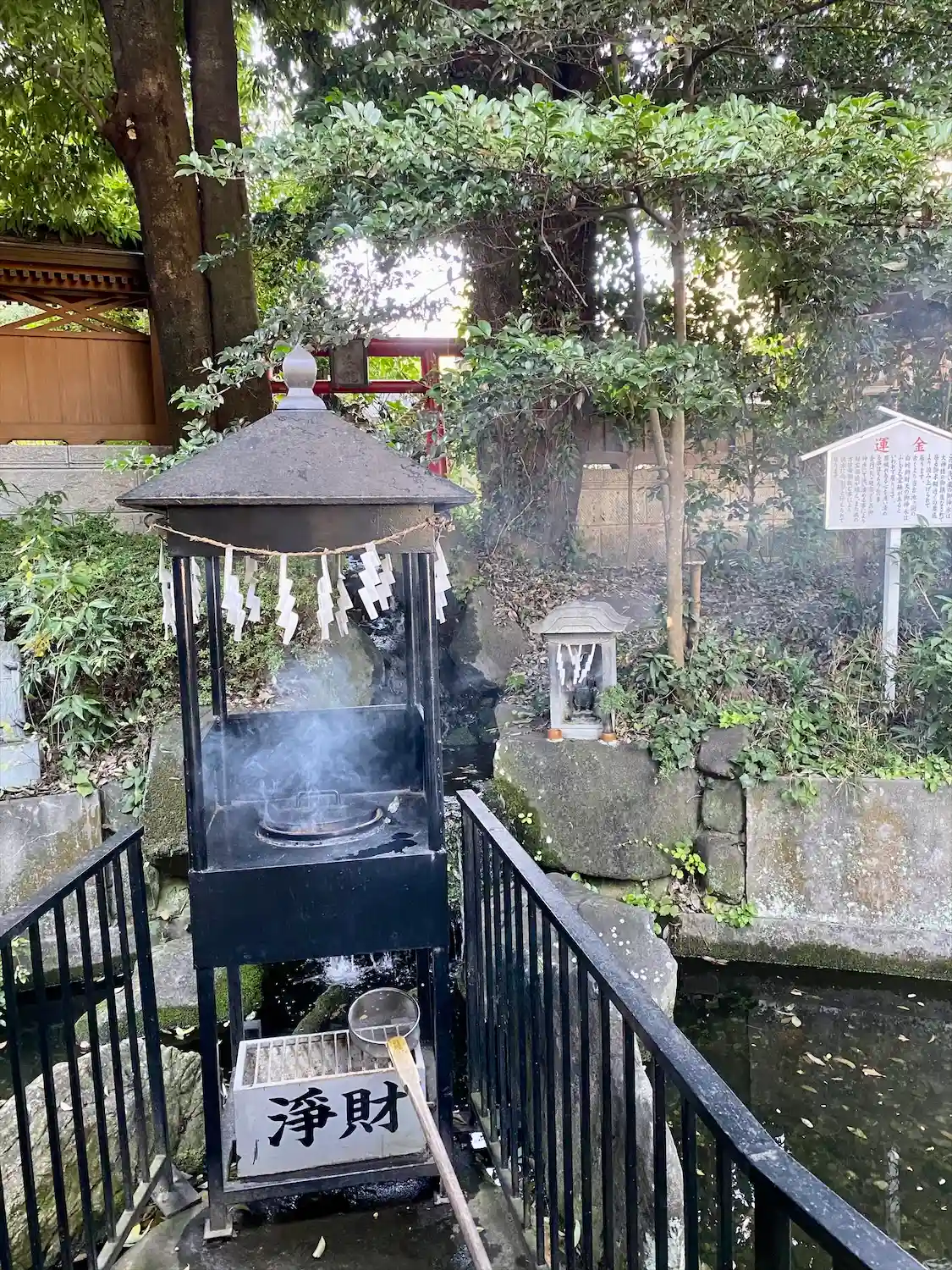 境内には銭洗の瀧があり、金運上昇の御神徳として崇敬を集めている。