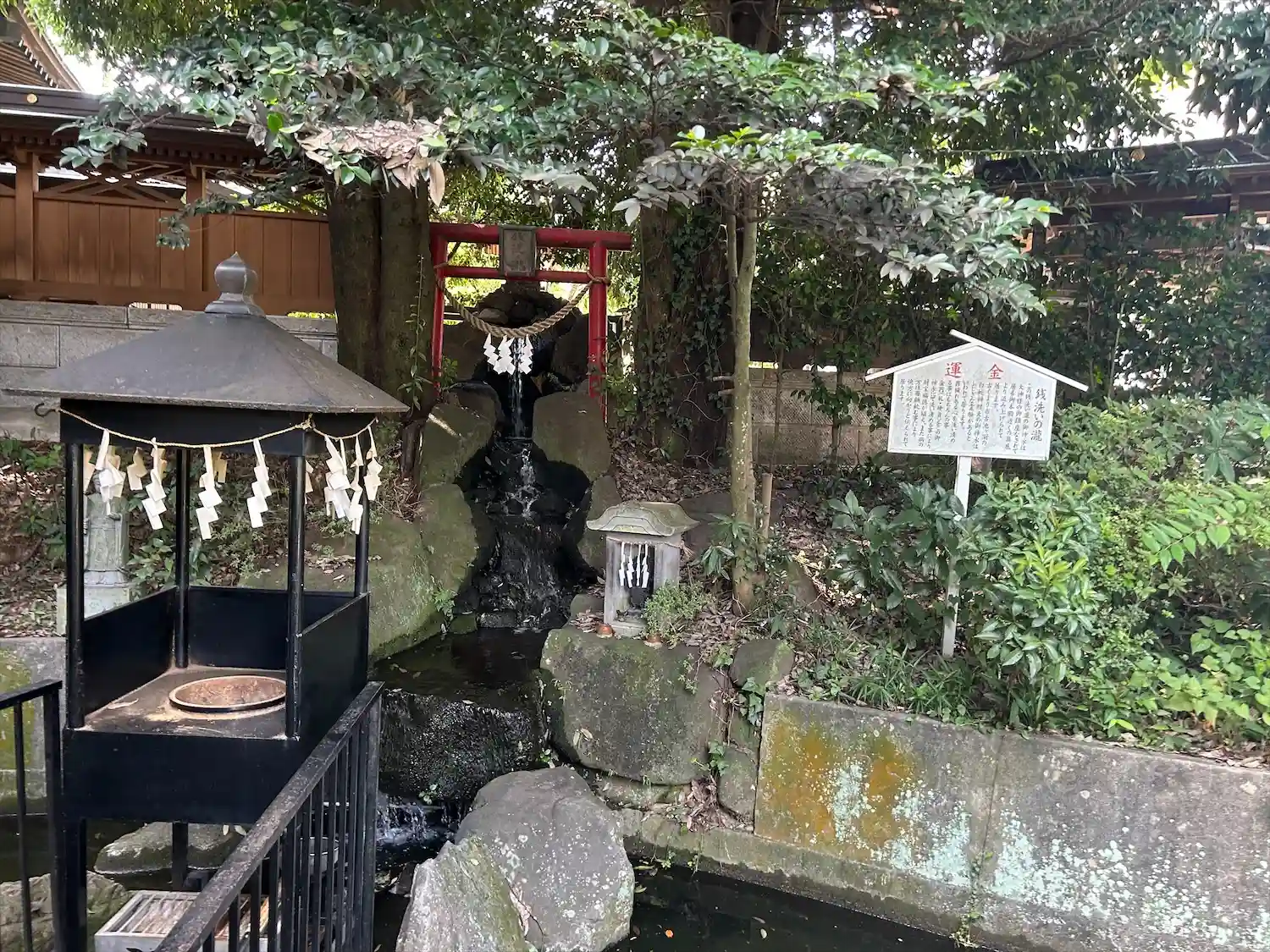 拝殿奥側には銭洗の滝。