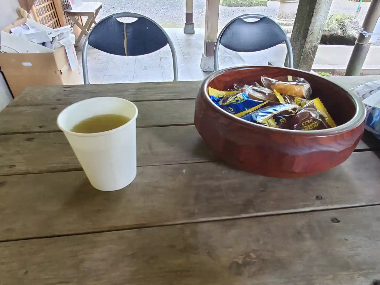 宮司さんが御朱印を書いてくれる間に冷たいお茶を出してくれました♪